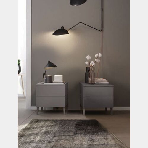 Coppia di comodini moderni a 2 cassetti con piedini, finitura Grigio titanio