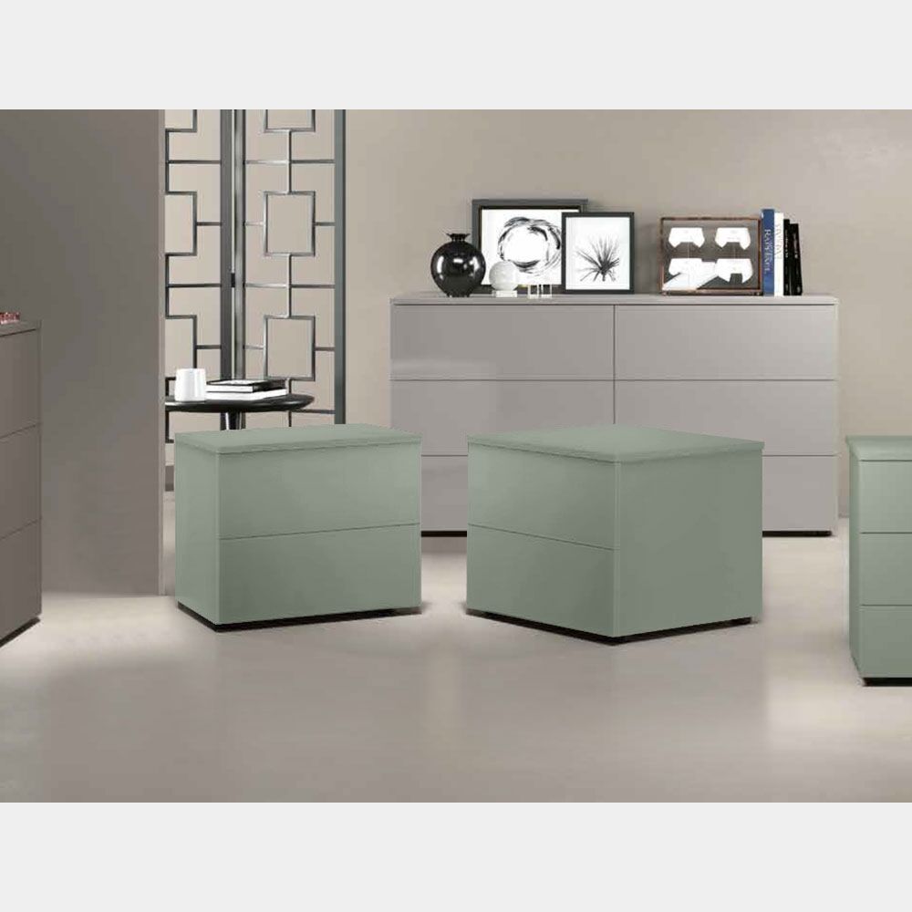 Coppia di comodini moderni a 2 cassetti, finitura Agave