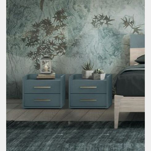 Coppia di comodini moderni a 2 cassetti, finitura Cadaques, made in Italy