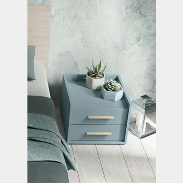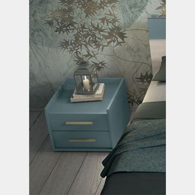 La coppia di comodini della collezione Aquila per la zona living room è disponibile nella finitura Cenere. I comodini hanno 2 cassetti con maniglie di serie.