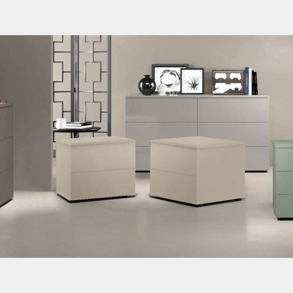 Coppia di comodini moderni a 2 cassetti, finitura Orzo