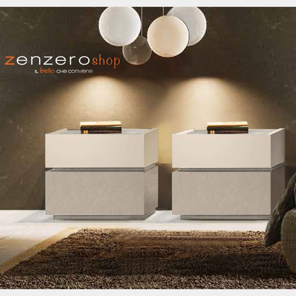 Coppia di comodini moderni Bahamas in finitura Orzo e Argilla spatolato