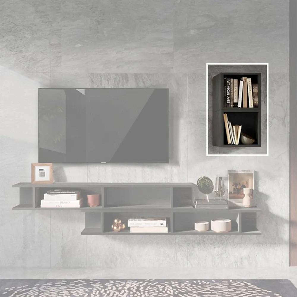 La coppia di vani a giorno completa l'arredo delle pareti attrezzate moderne, donando all'ambiente uno stile moderno e di tendenza.