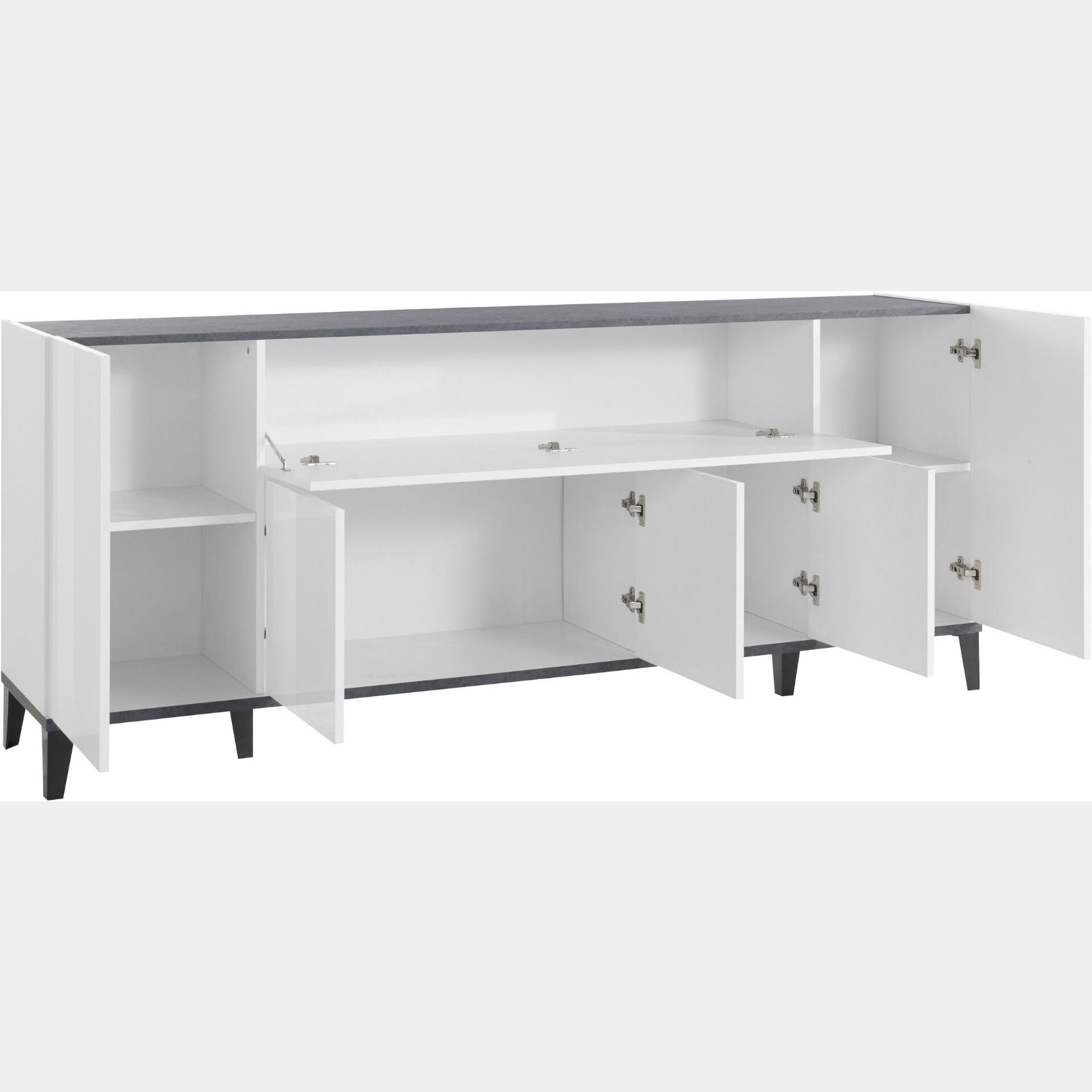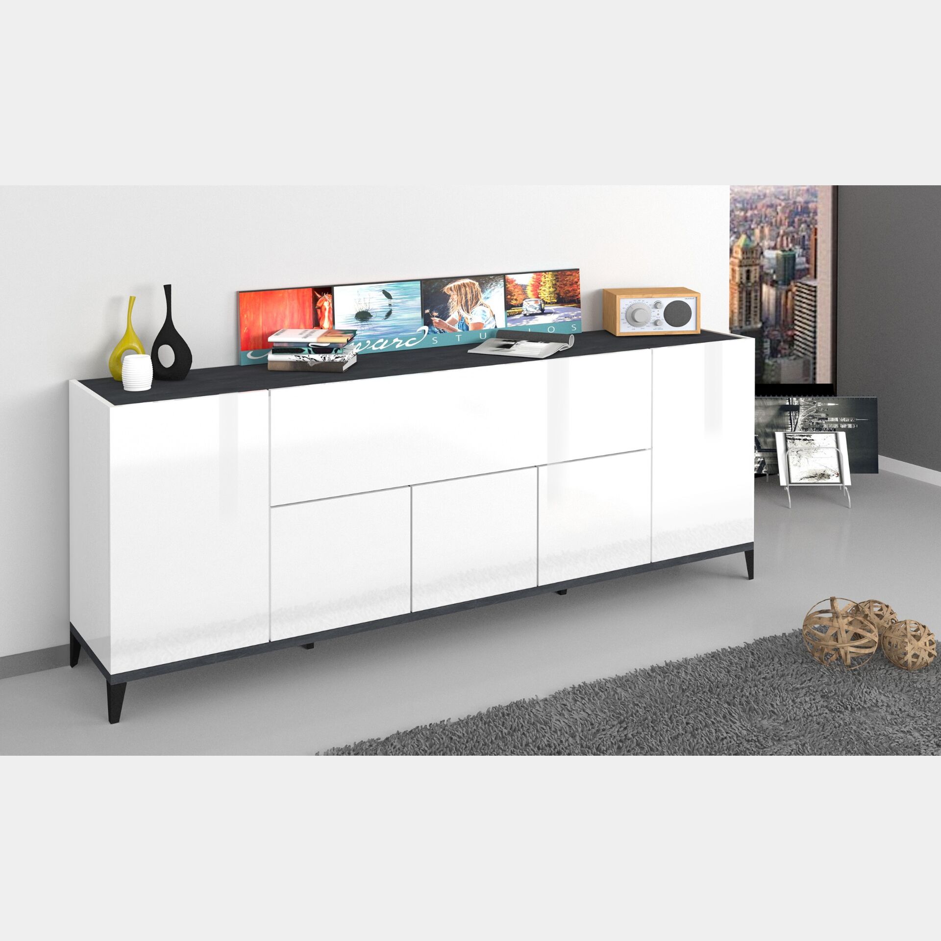 Le 2 finiture in Ardesia e Bianco lucido entrano in contrasto per risaltarne l'estetica, consentendo alla madia di diventare la protagonista del tuo soggiorno. Le altre finiture disponibili sono in Bianco lucido e Pero oppure Ardesia e Pero.