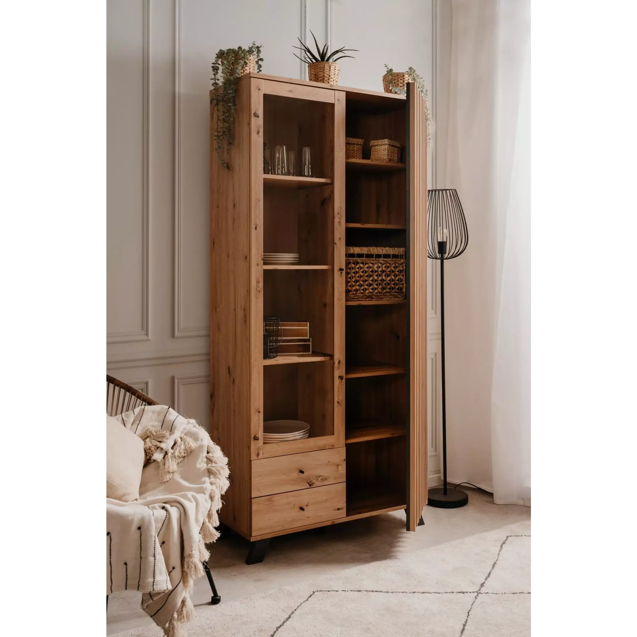 Vetrina stile nordico, finitura Rovere Oak e Antracite