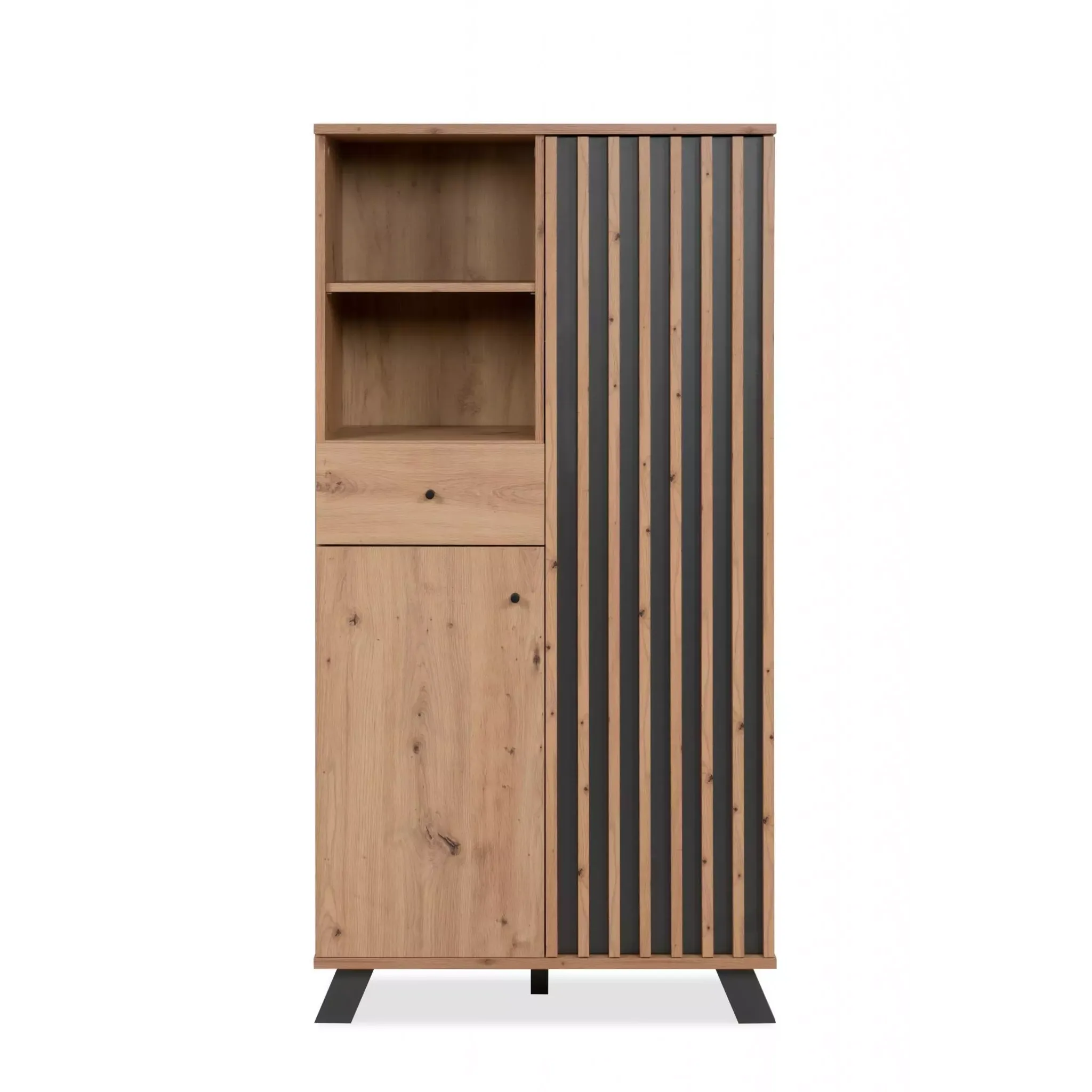 Innovativa Madia alta moderna, stile nordico in finitura Rovere Oak e Antracite.