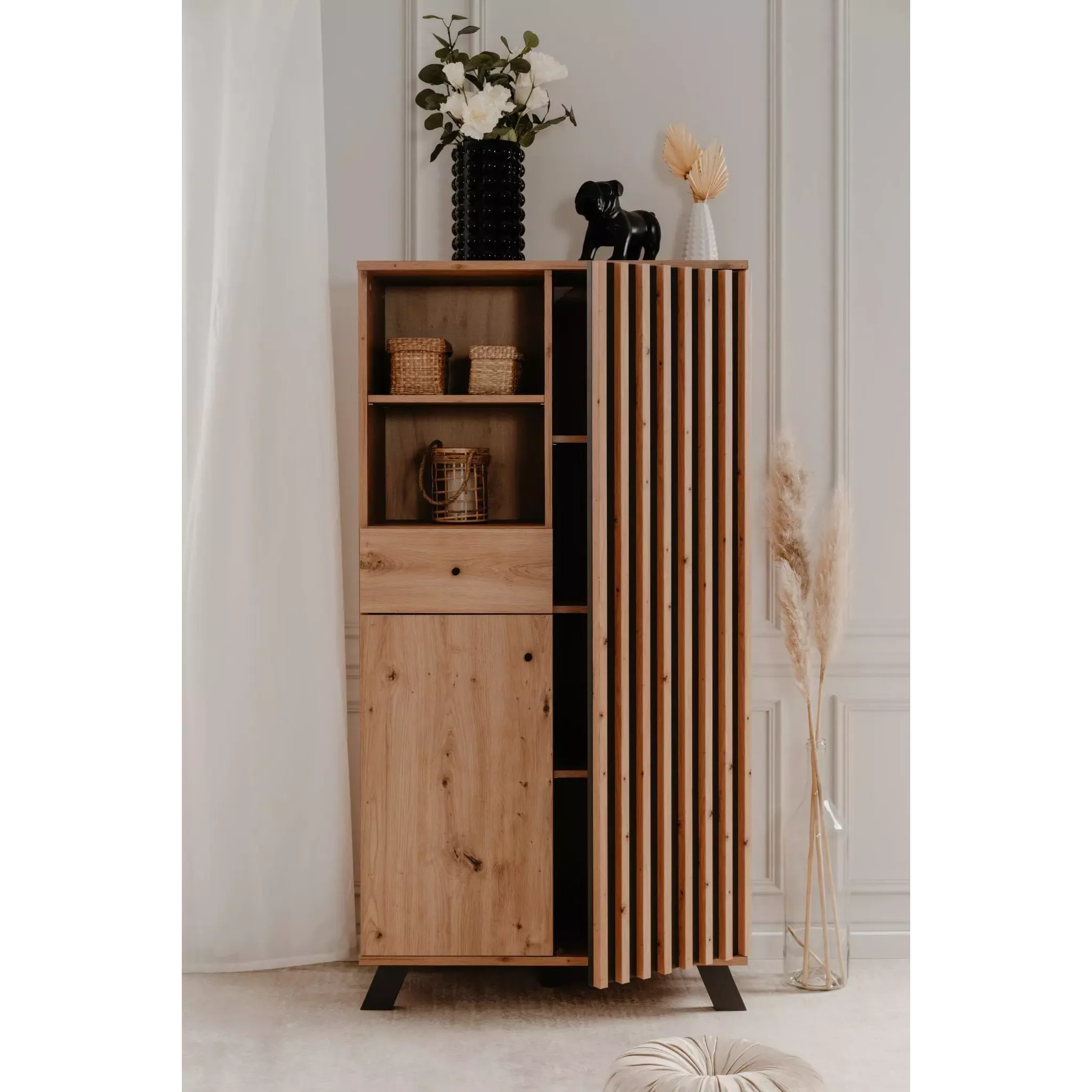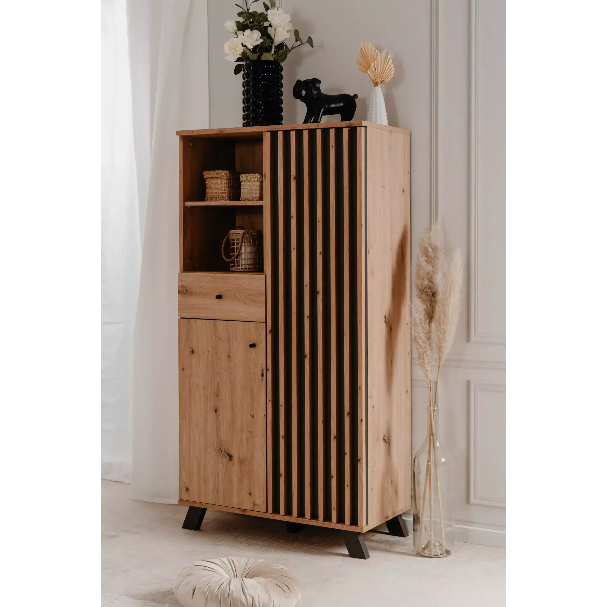 Madia alta stile nordico, finitura Rovere Oak e Antracite