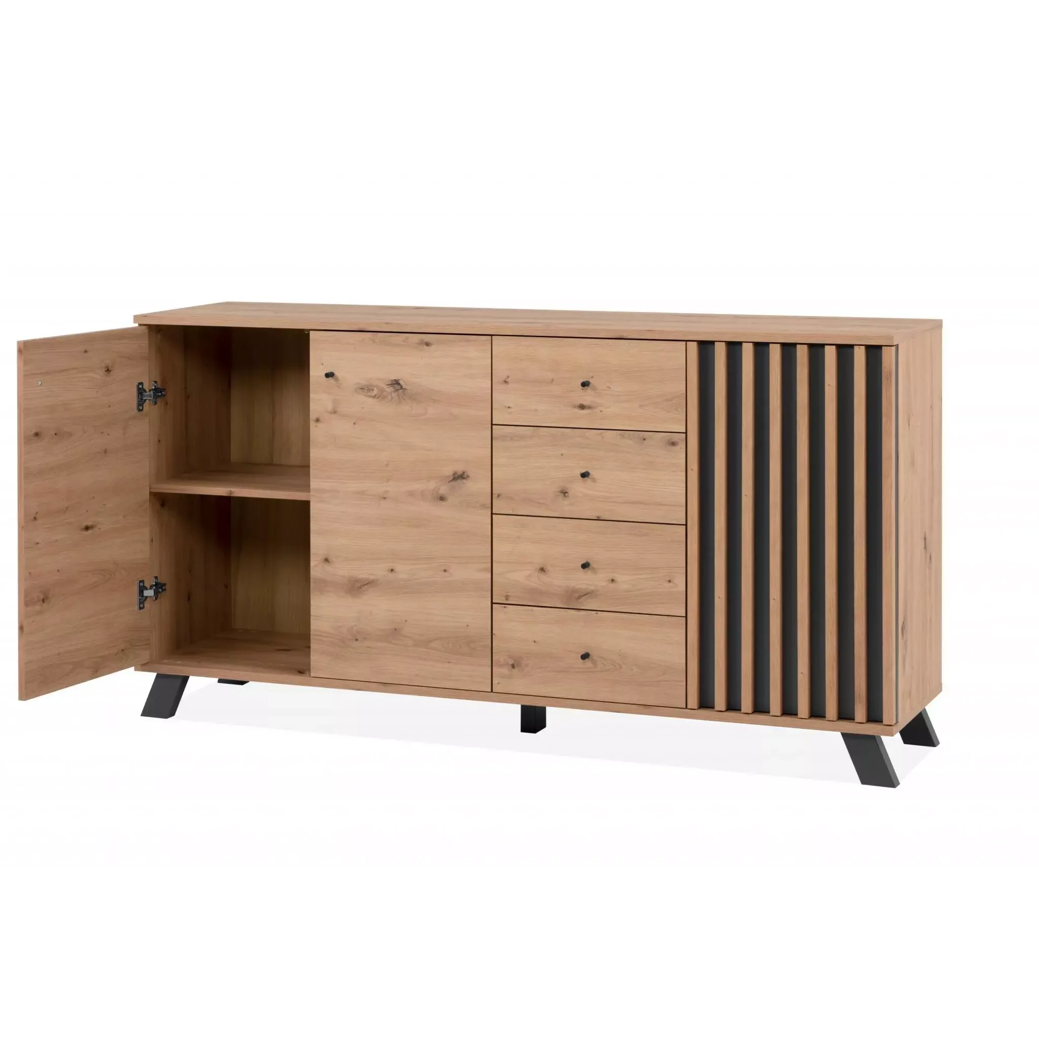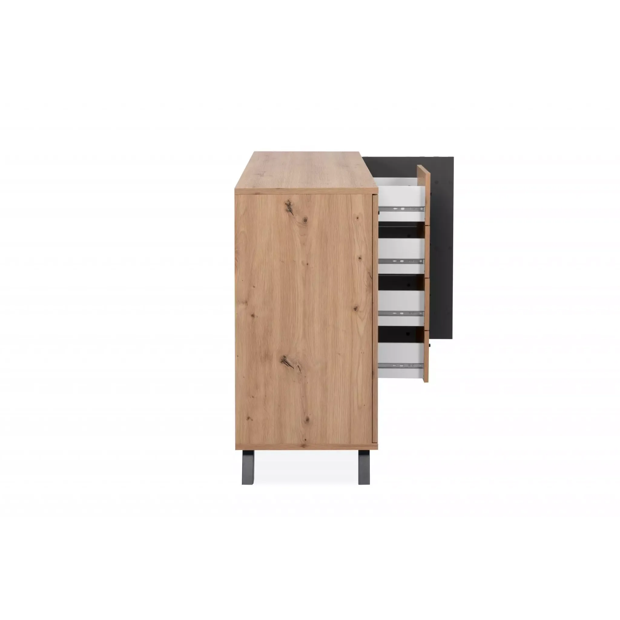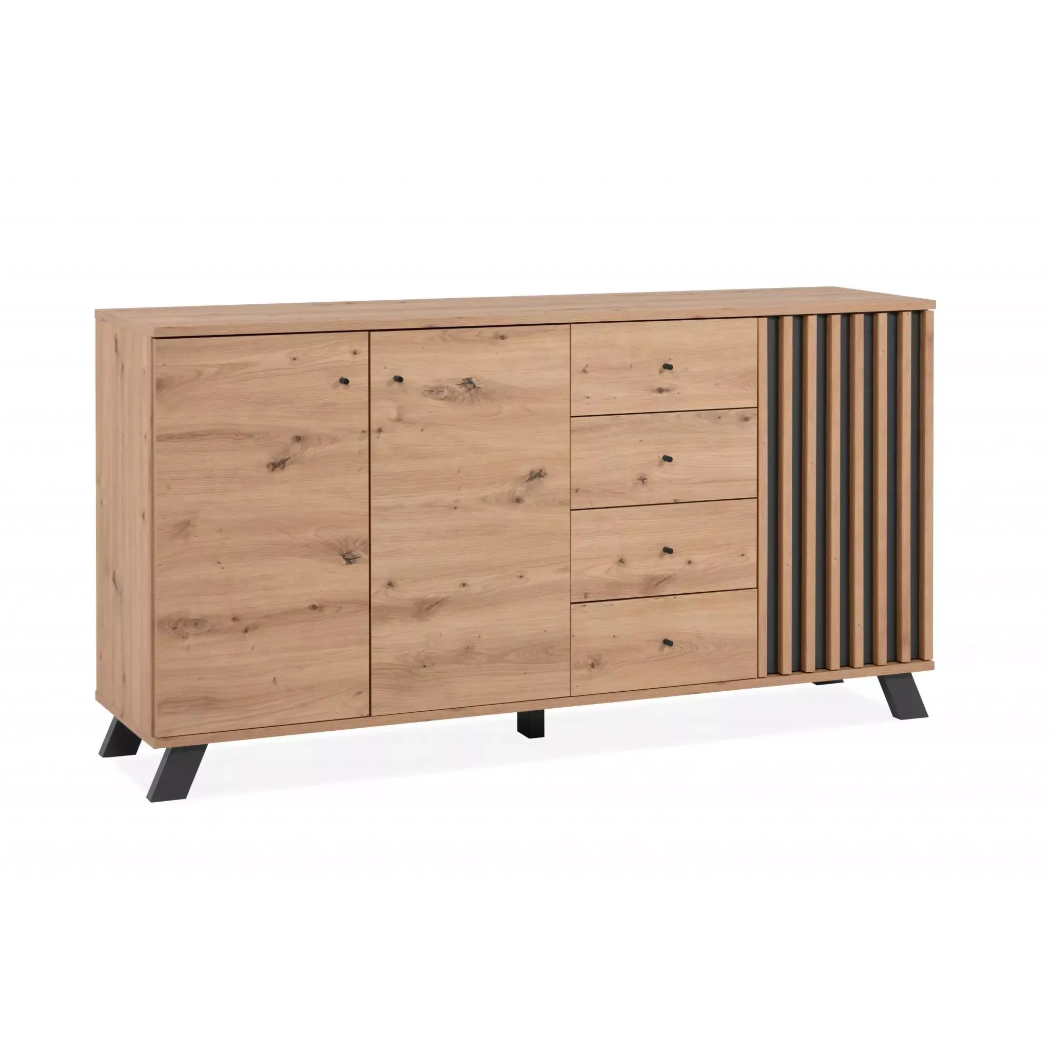 Credenza 3 ante e 4 cassetti, finitura Rovere Oak e Antracite