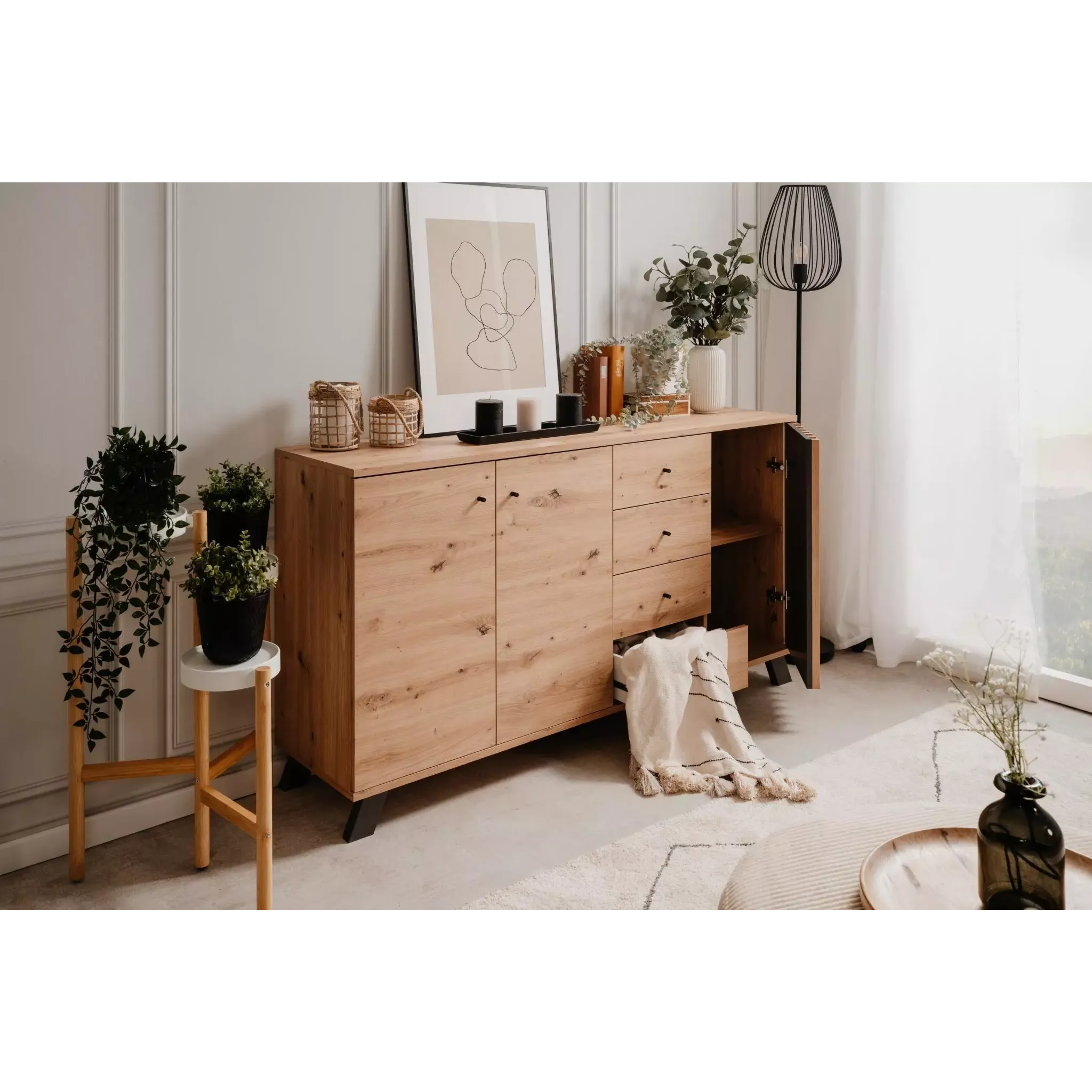 Grazie al design particolare questa madia è perfetta per ambienti nordici o moderni.