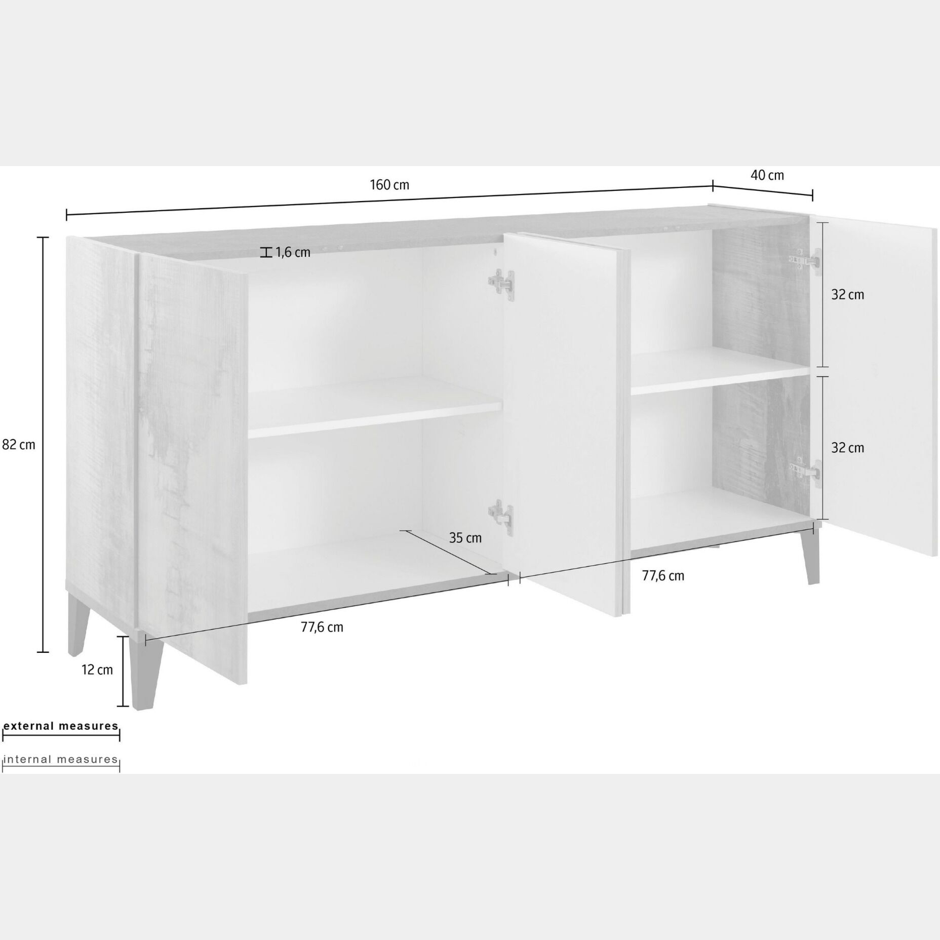 La madia è dotata di 4 ante battenti che formano 2 vani all'interno dei quali è previsto un ripiano interno. La credenza, grazie alle sue dimensioni, diventa il perfetto mobile di arredo che coniuga estetica a praticità, la sua ampia capienza infatti assicura una funzionalità totale.