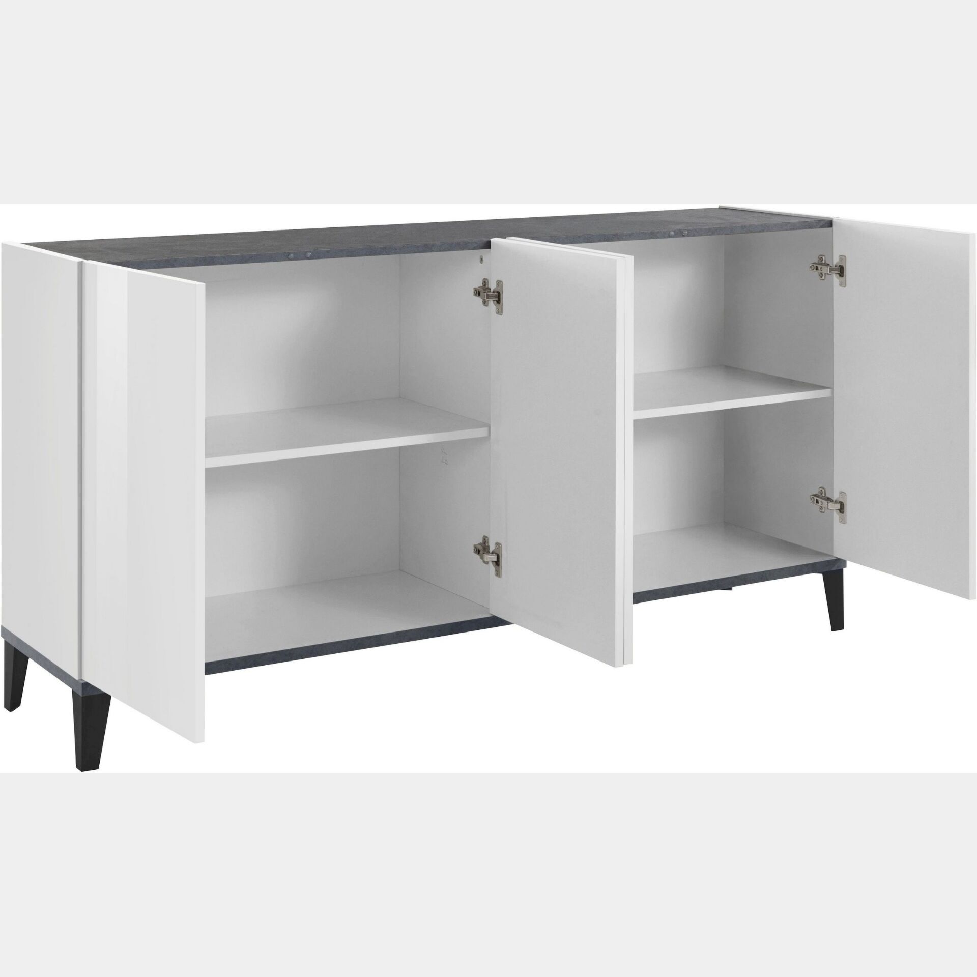 La madia si propone come un'elegante soluzione che arreda il tuo soggiorno con carattere e stile. La finitura in Bianco lucido, di grande tendenza negli ultimi anni, assicura luce e calore all'ambiente per renderlo accogliente ed elegante. A contrapporsi è l'Ardesia che da alla madia un tocco frizzante e moderno.