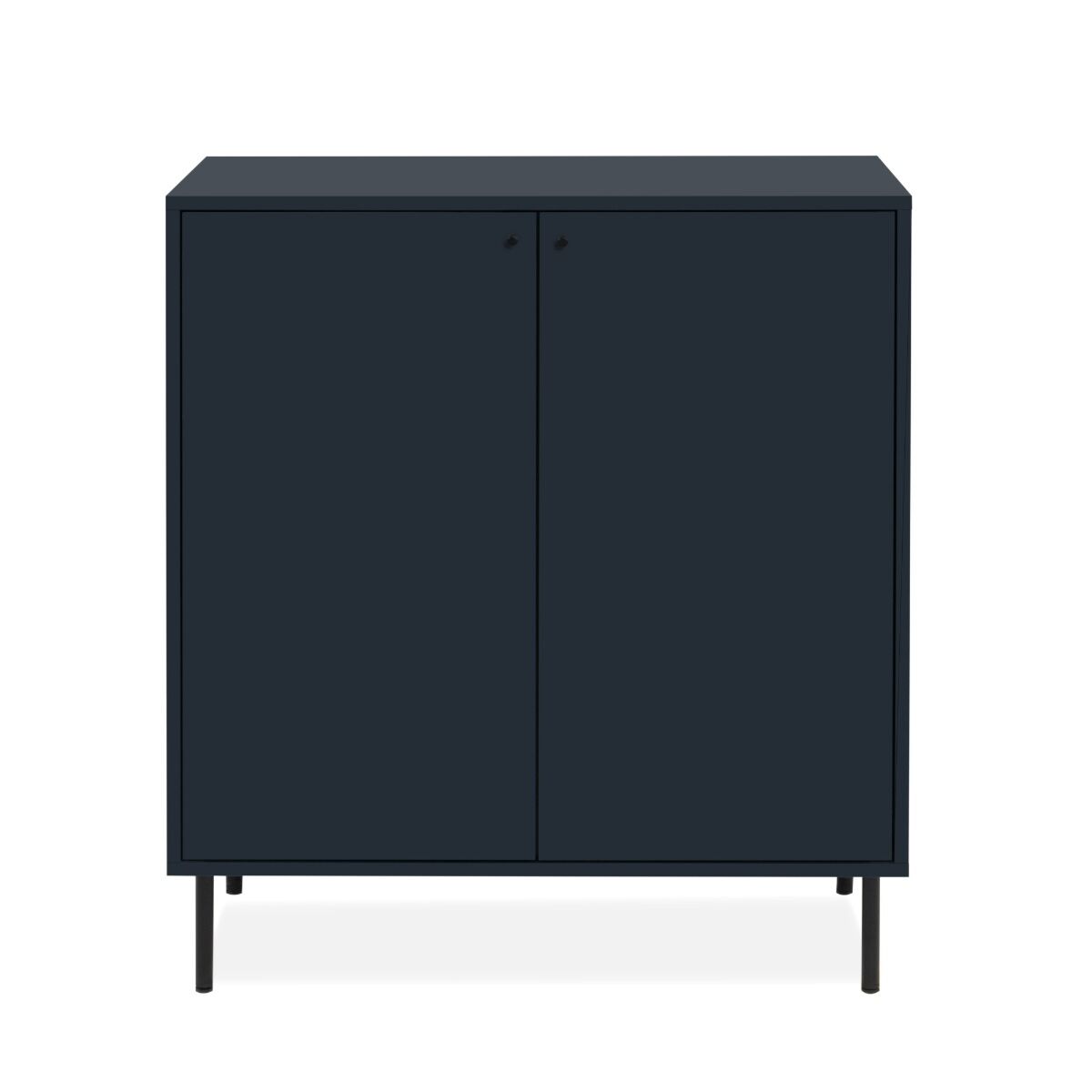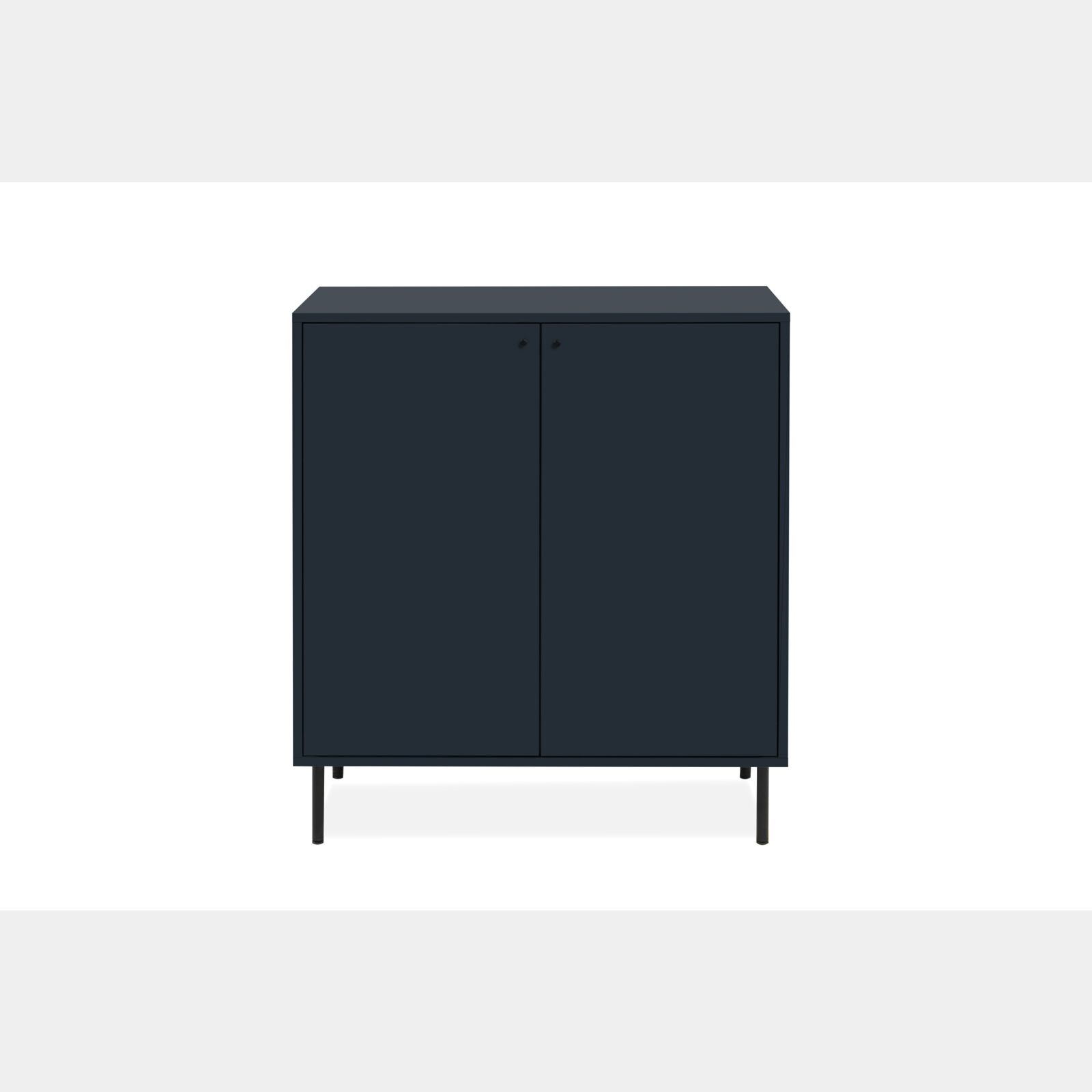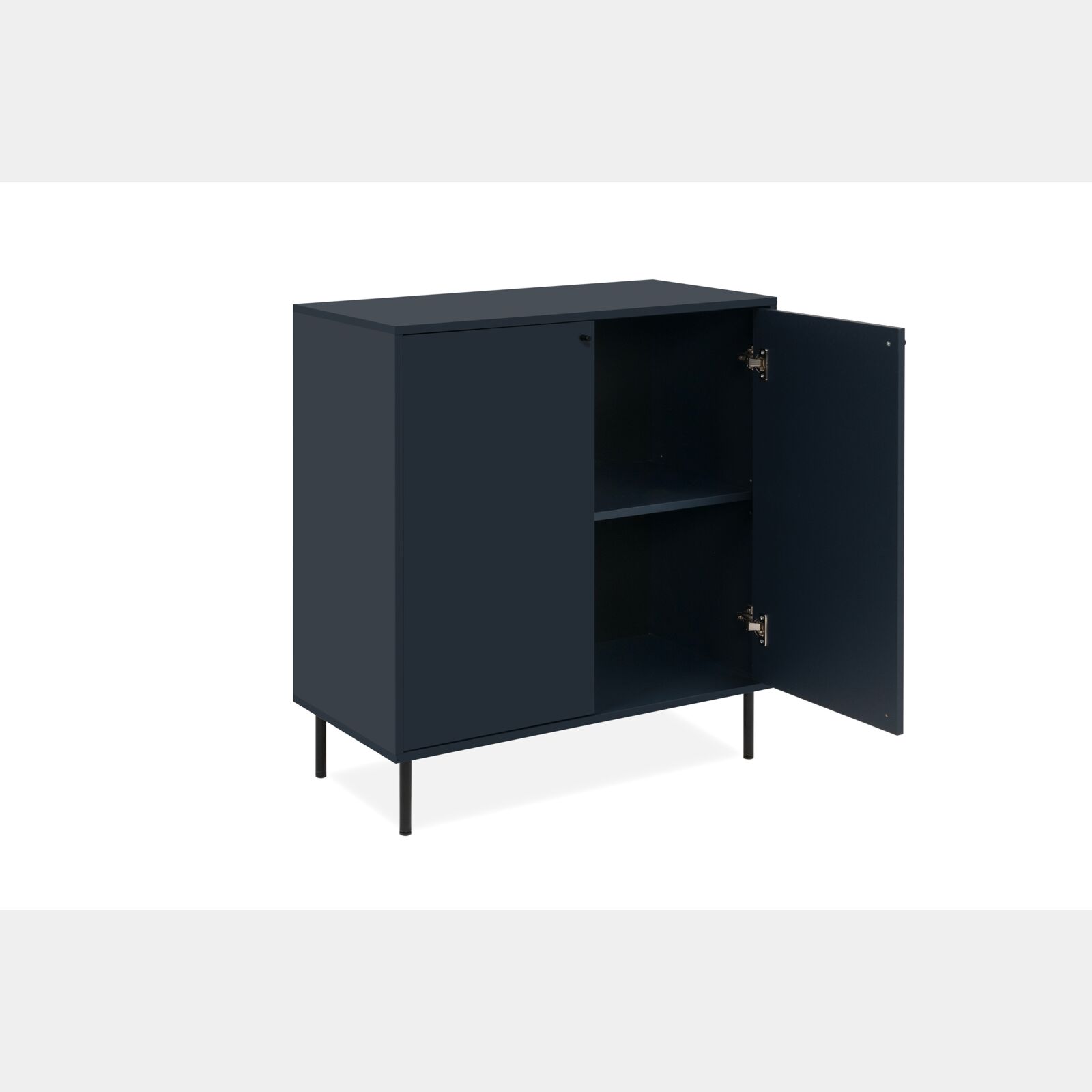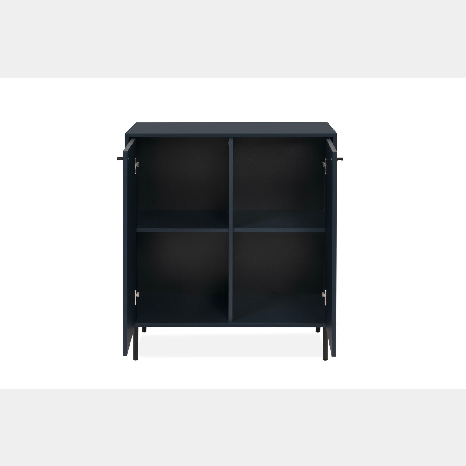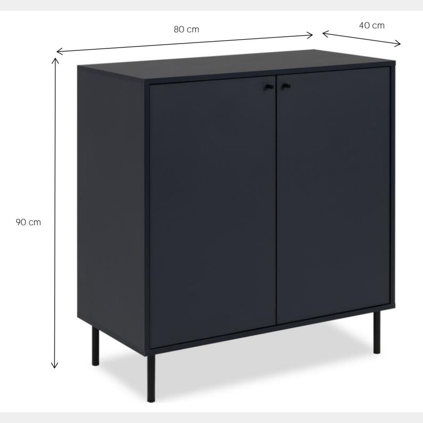 Una pratica soluzione alta a 2 ante, realizzata in finitura Blu, con maniglie minimali in metallo nero.