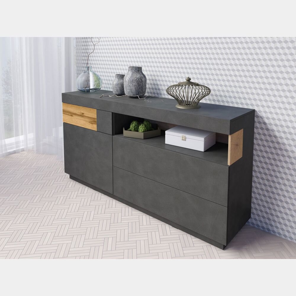 Madia minimal 1 anta e 3 cassetti, colore rovere naturale e antracite