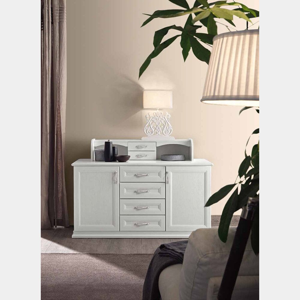 Credenza Classic con 2 ante, 4 cassetti e sopralzo in finitura Bucaneve