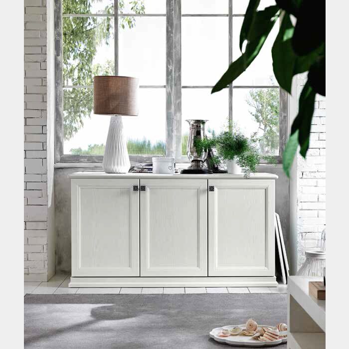 Il suo design è pensato per chi desidera uno stile tradizionale e ricercato. Grazie alla sua delicata finitura in Bucaneve dona luce e calore all'ambiente, rendendolo accogliente. Elementi come lo zoccolo ed i particolari pomelli con lavorazione caratterizzano la credenza donandole una linea classica e raffinata.