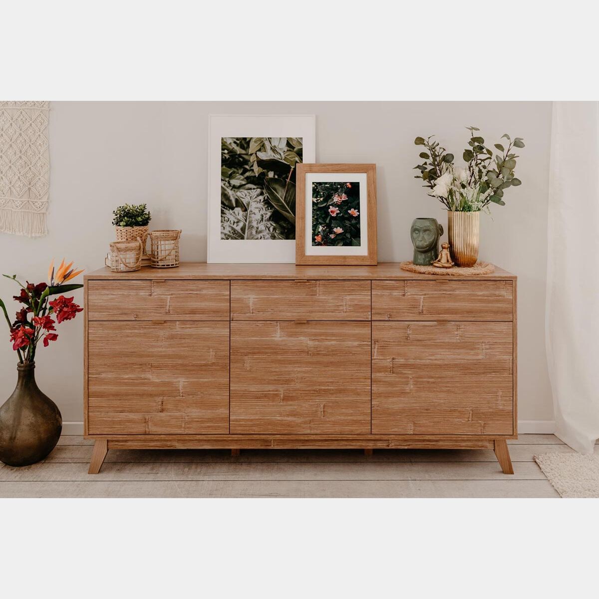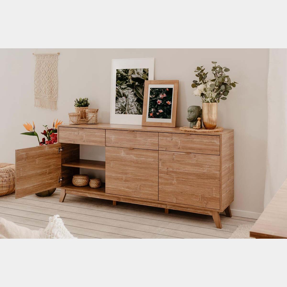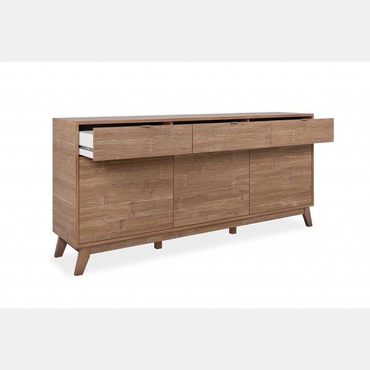 Credenza di design in finitura bamboo con tre ante e tre cassetti