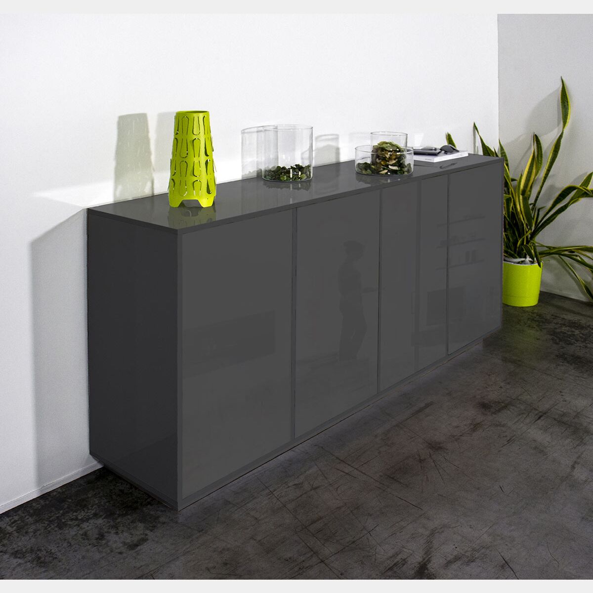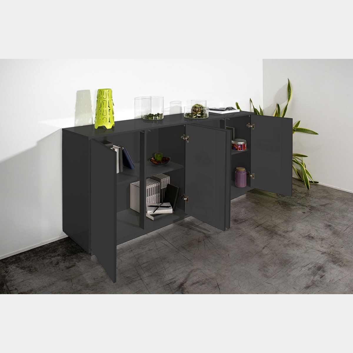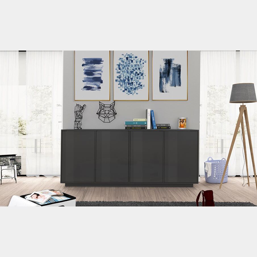 Credenza in appoggio in finitura antracite lucida con quattro ante