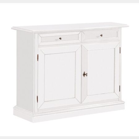 Elegantissima credenza in legno bianco opaco, arte povera: sobria e moderna, presenta una linea che può essere abbinata sia ad un ambiente classico che a uno moderno.