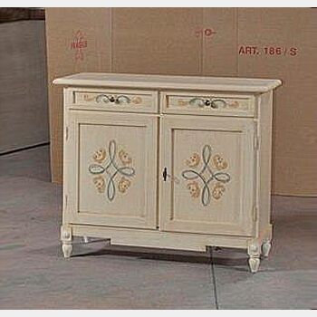 Credenza in legno finitura Avorio pennellato con decori, 2 porte e 2 cassetti 105x94