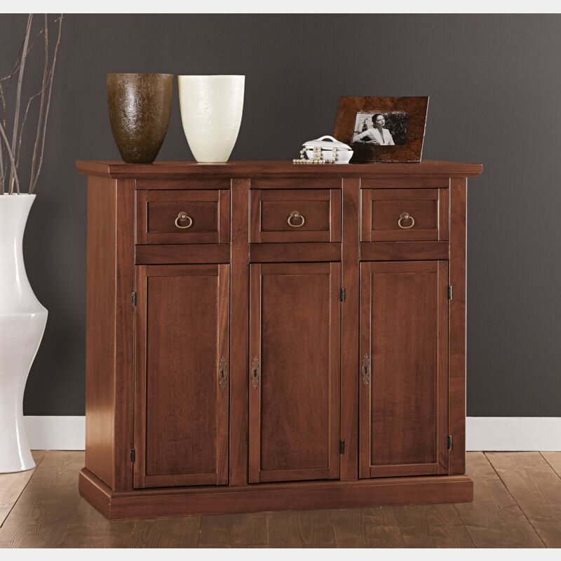 Credenzina dal design classico capiente e di robusta costruzione. Disponibile in Noce Arte Povera, è corredata di 3 ante e 3 cassetti. Viene completata dalle maniglie anticate.