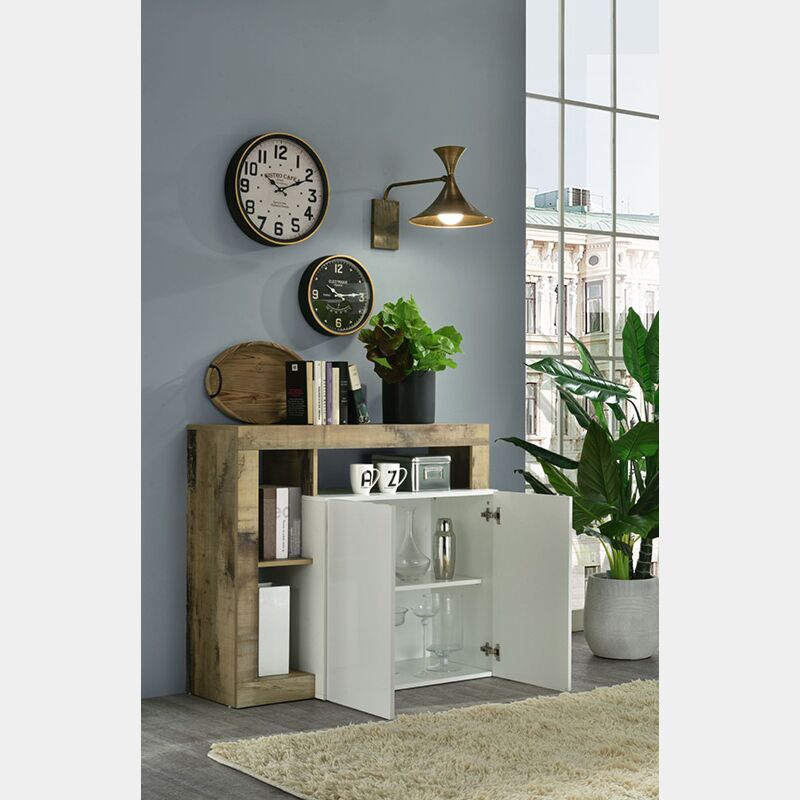 Credenza Madia moderna con 2 ante in finitura bianco laccato lucido e pero