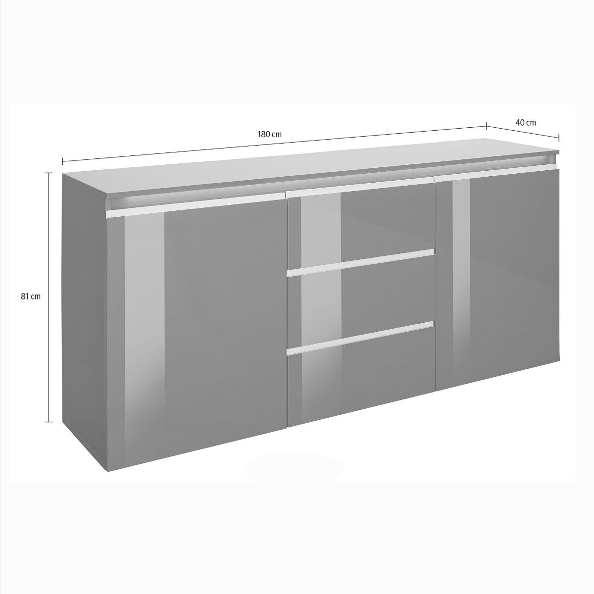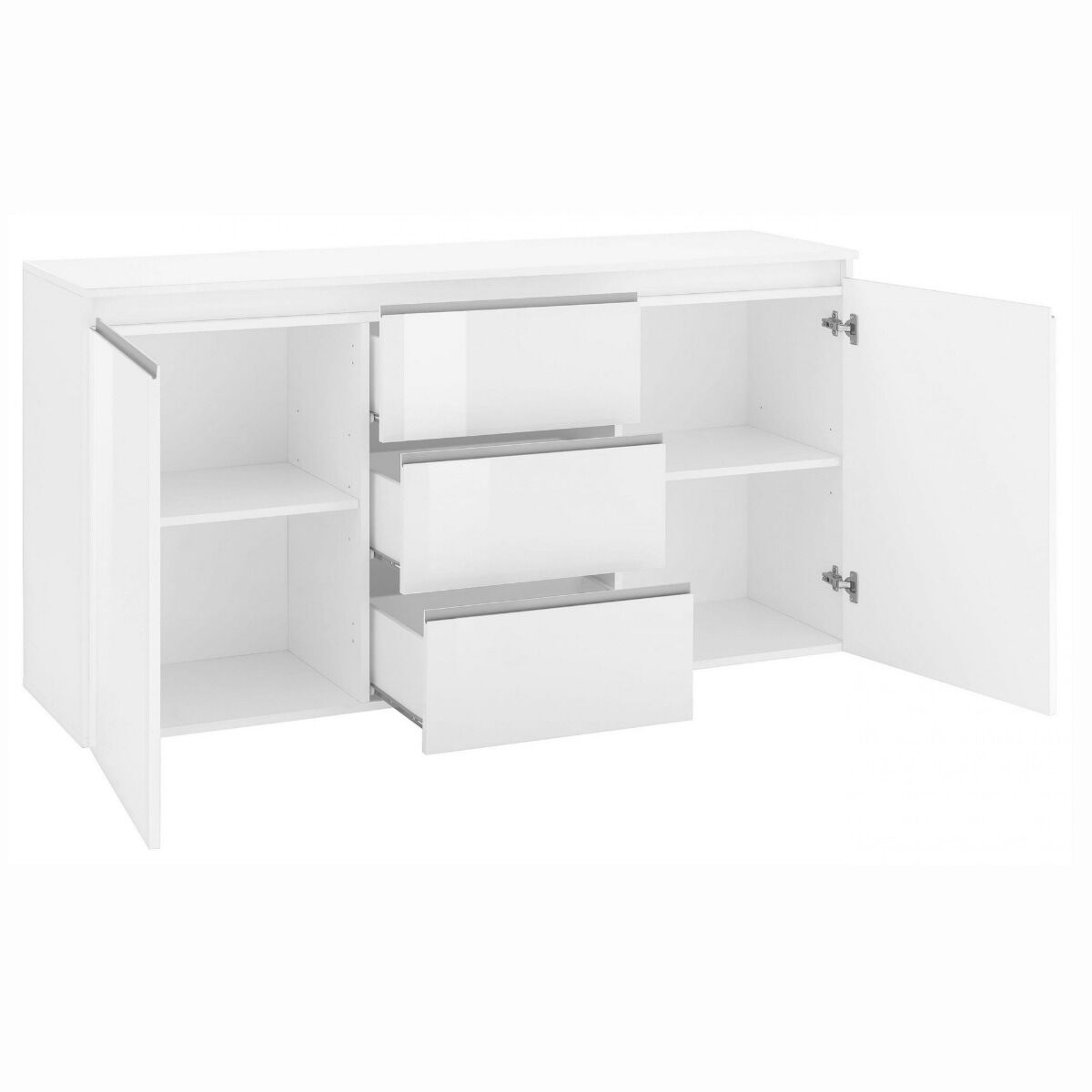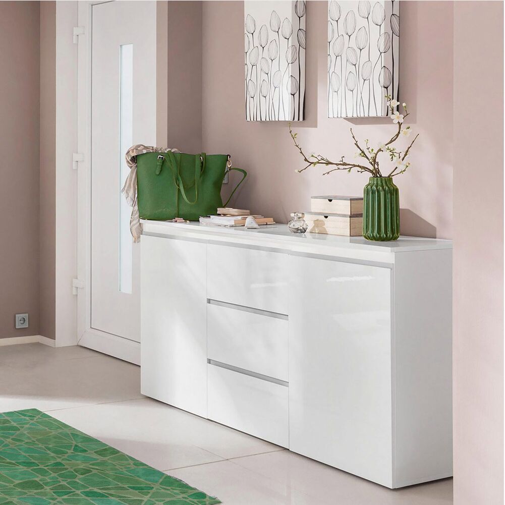 Credenza moderna 3 cassetti e 2 ante, finitura Bianco laccato lucido