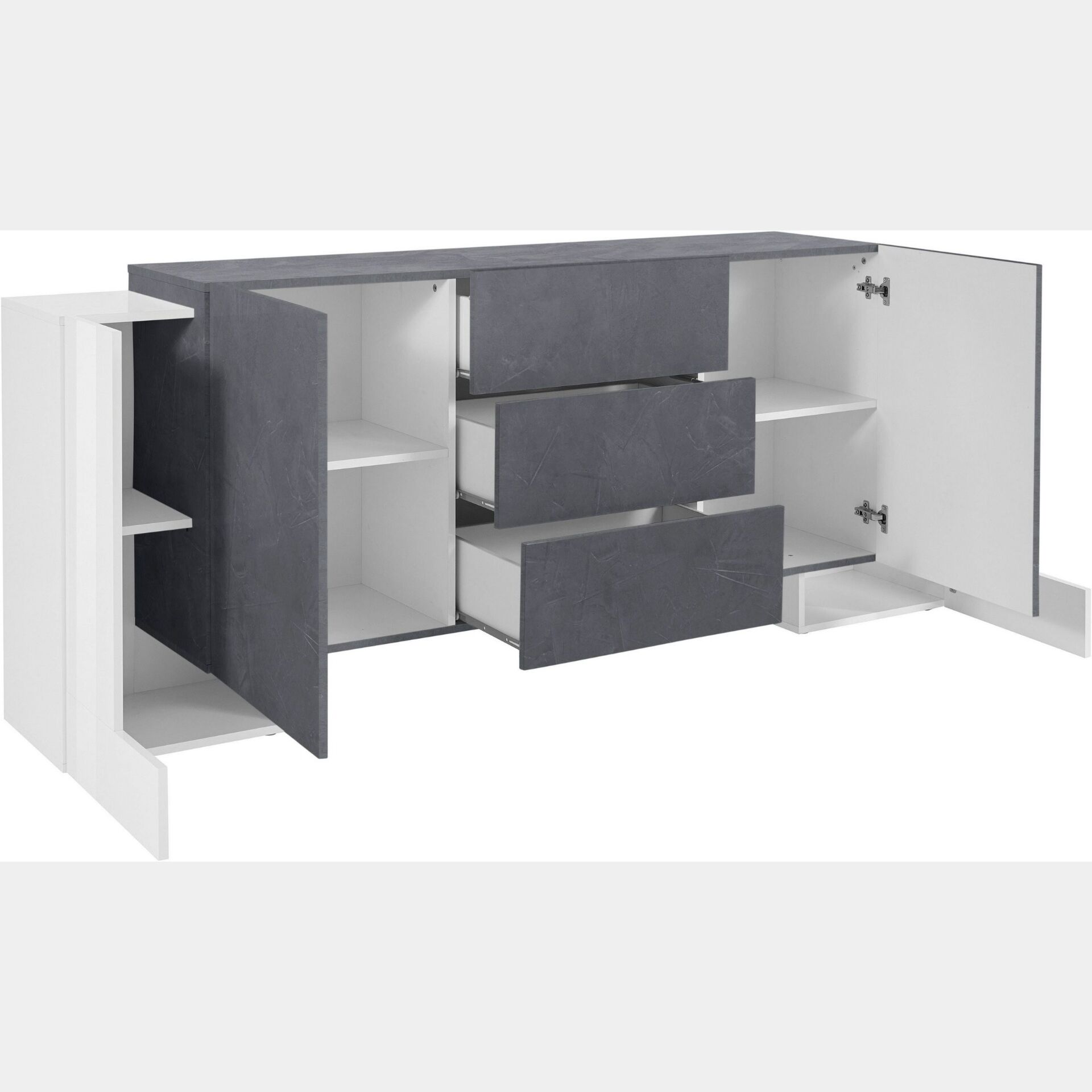 Credenza moderna Ardesia e Bianco lucido, 3 cassetti e 4 ante