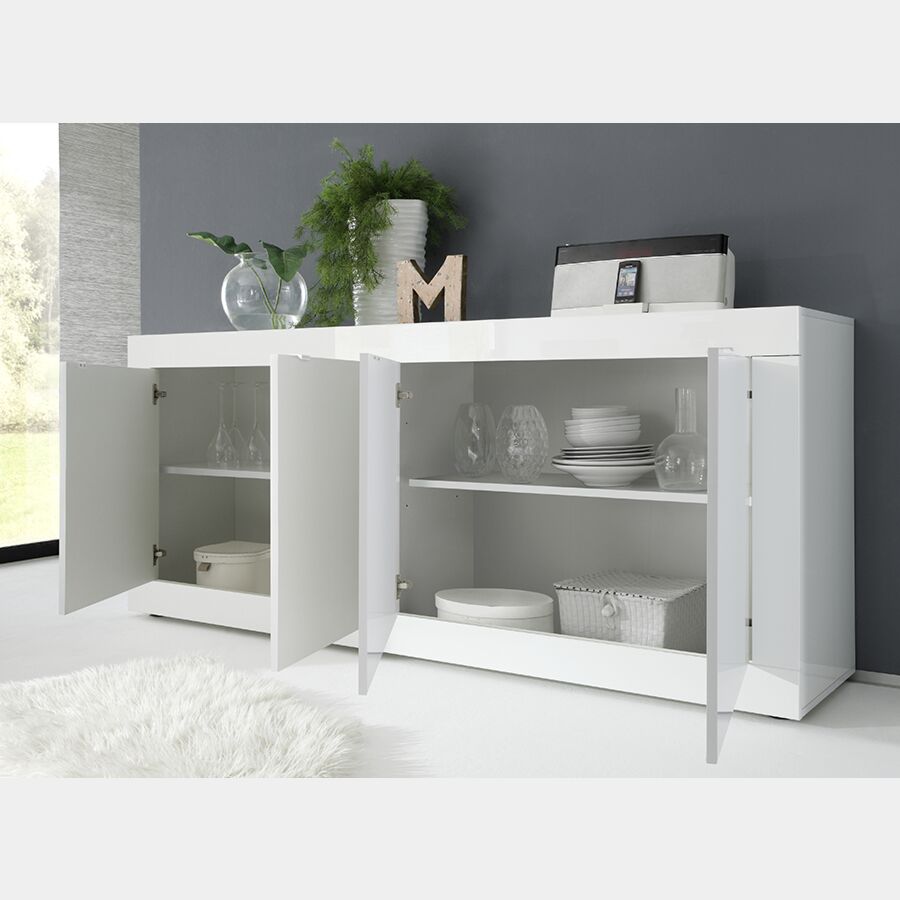 Credenza Moderna, Madia bianca laccata lucida a 4 ante