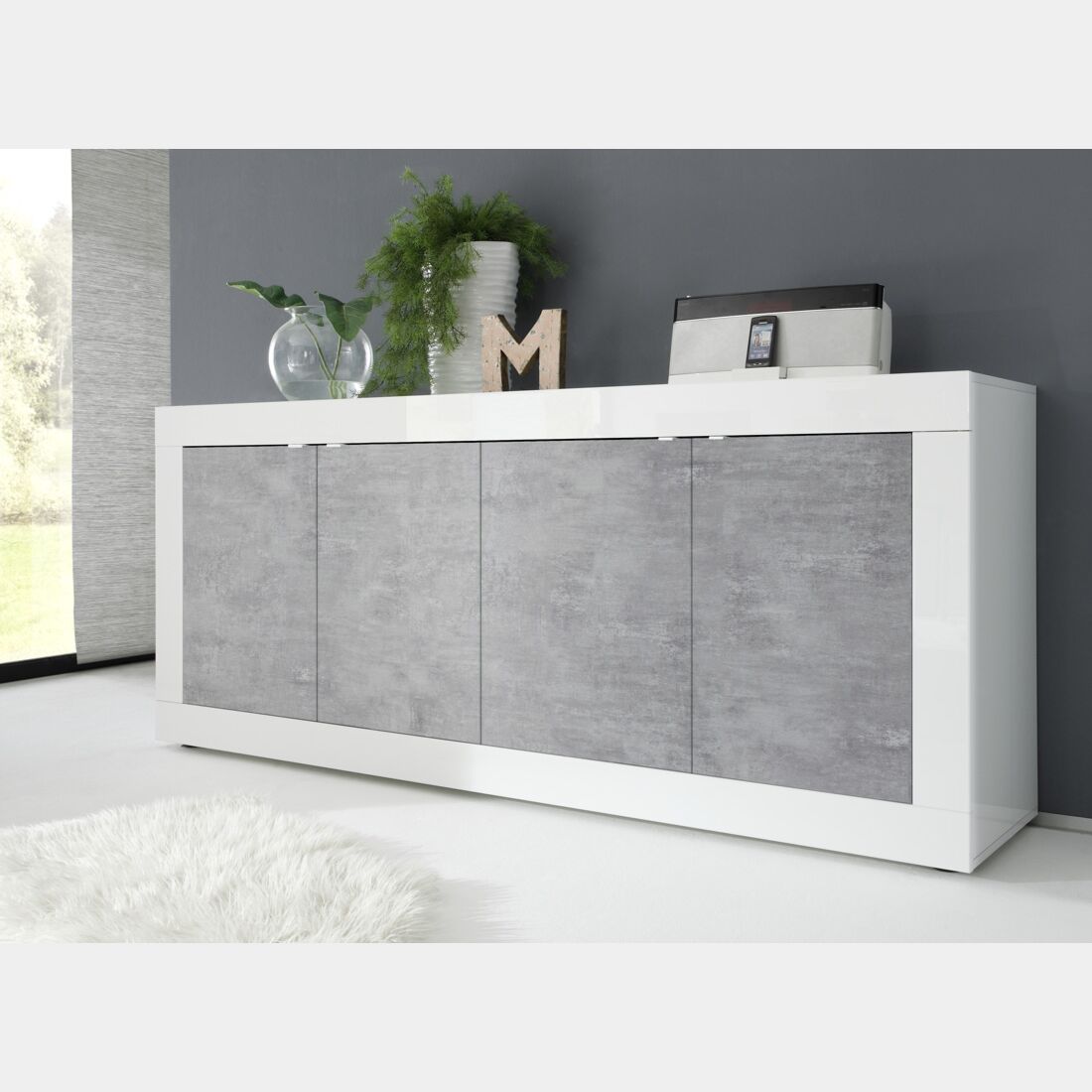 Credenza Moderna, Madia bianca laccata lucida e cemento a 4 ante