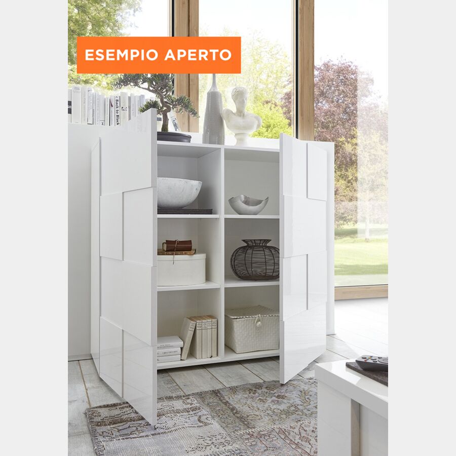 Credenza Moderna, Madia di Design, 2 ante Alta, Grigio Lucido