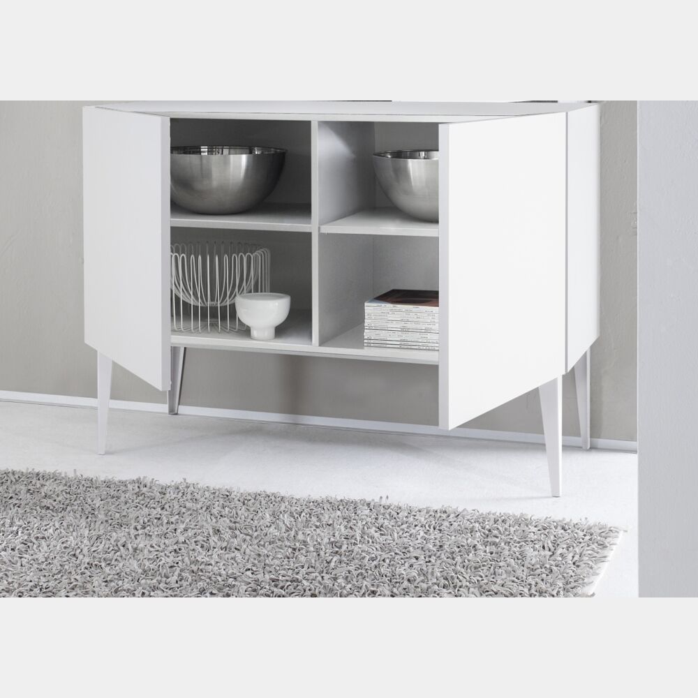 Madia credenza a 2 ante con piedi in finitura bianco laccato opaco.