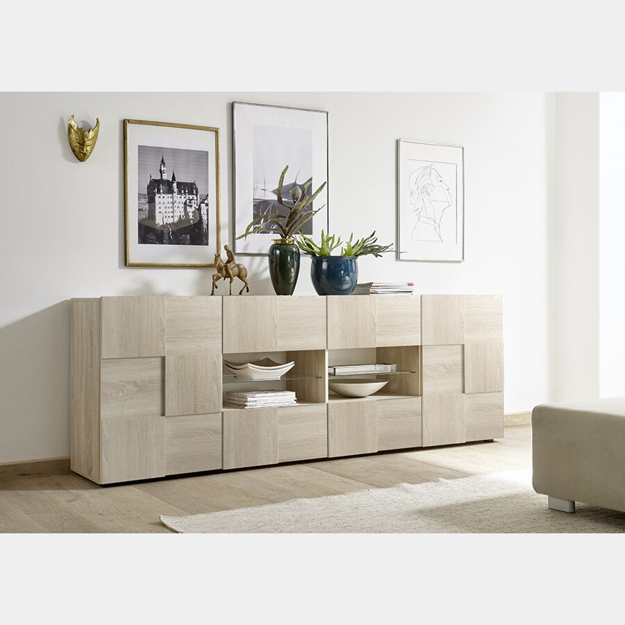 Credenza Moderna, Madia di Design, 2 ante e 4 cassetti, Rovere Samoa