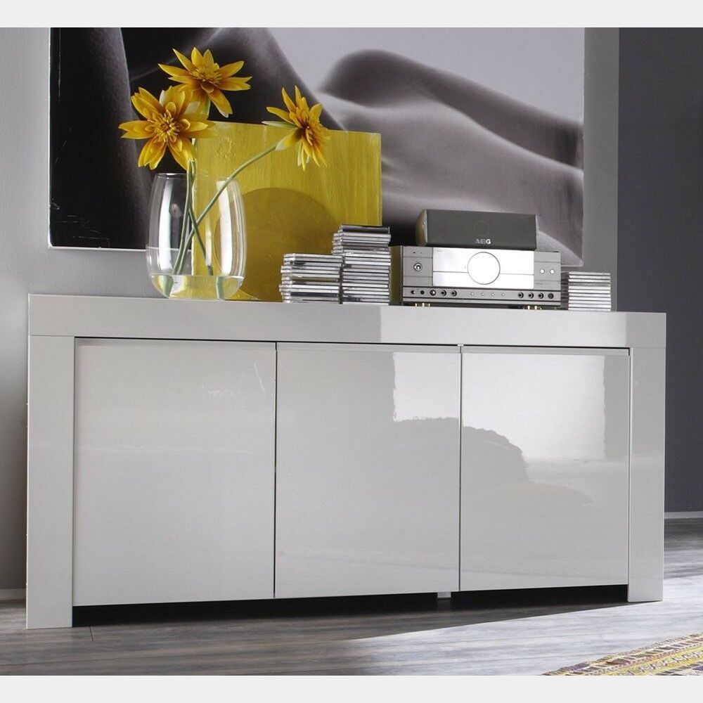 Credenza Moderna, Madia di Design, 3 ante, Bianco Lucido, Alba