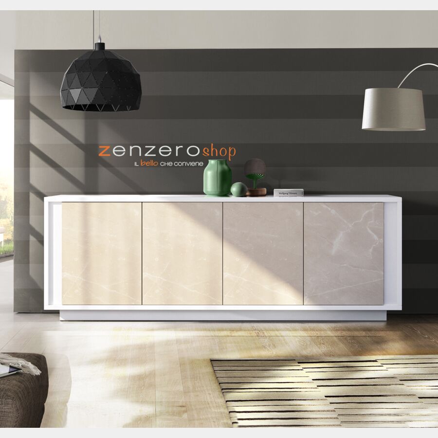 Credenza Moderna, Madia di Design, 4 ante, Bianco Nobilitato e Opera