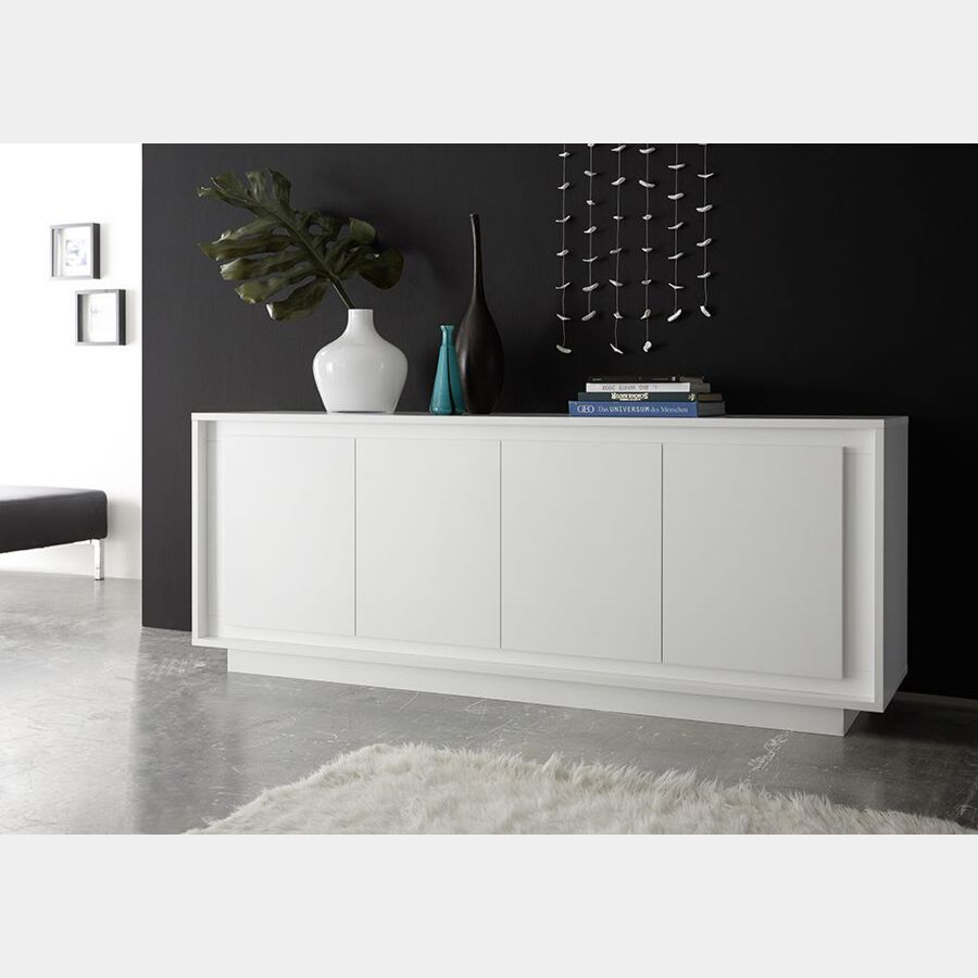 Credenza Moderna, Madia di Design, 4 ante, Bianco Opaco