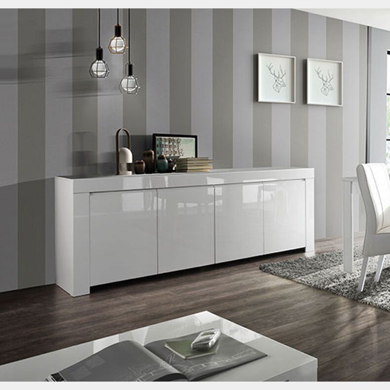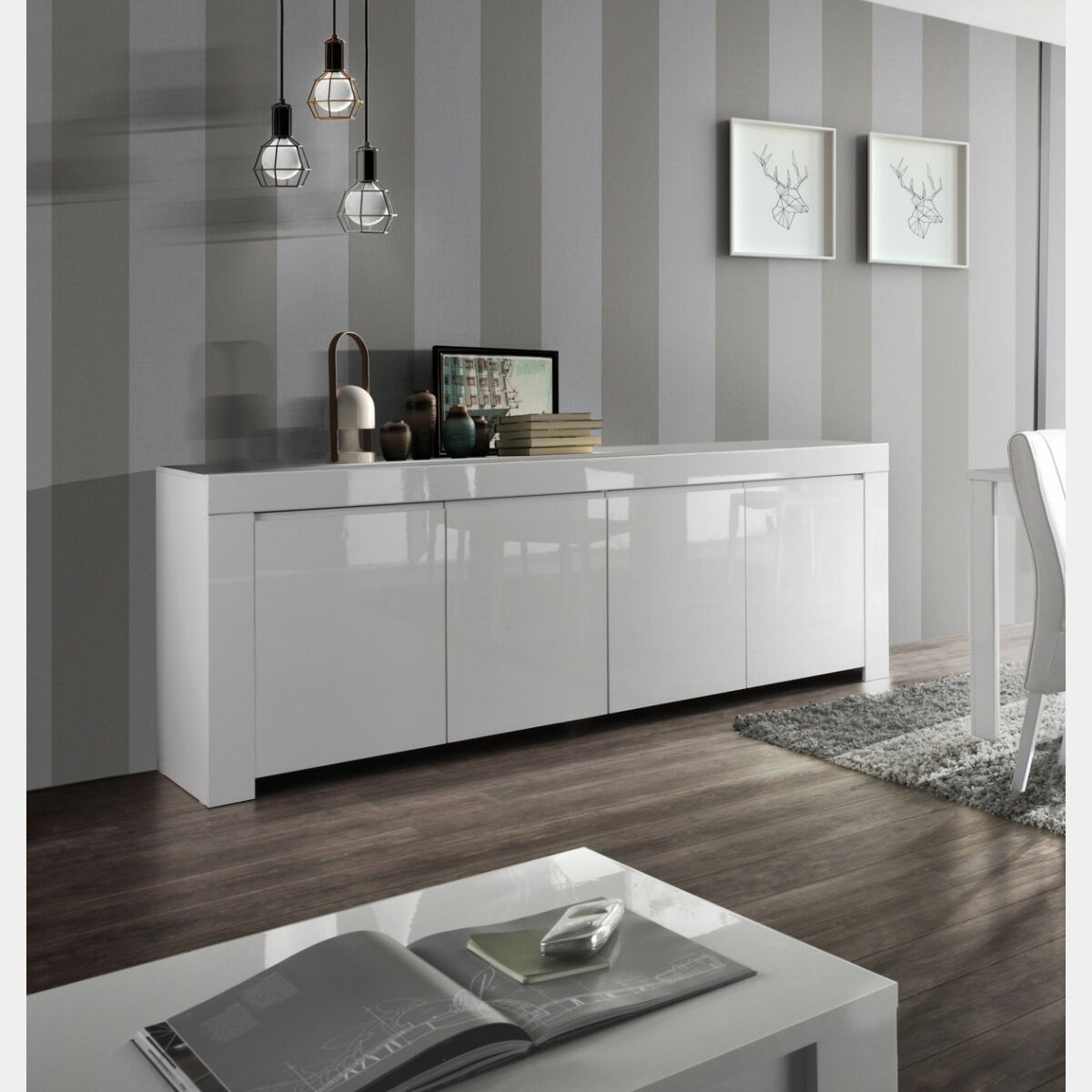 Credenza Moderna, Madia di Design, 4 ante, colore Bianco Lucido