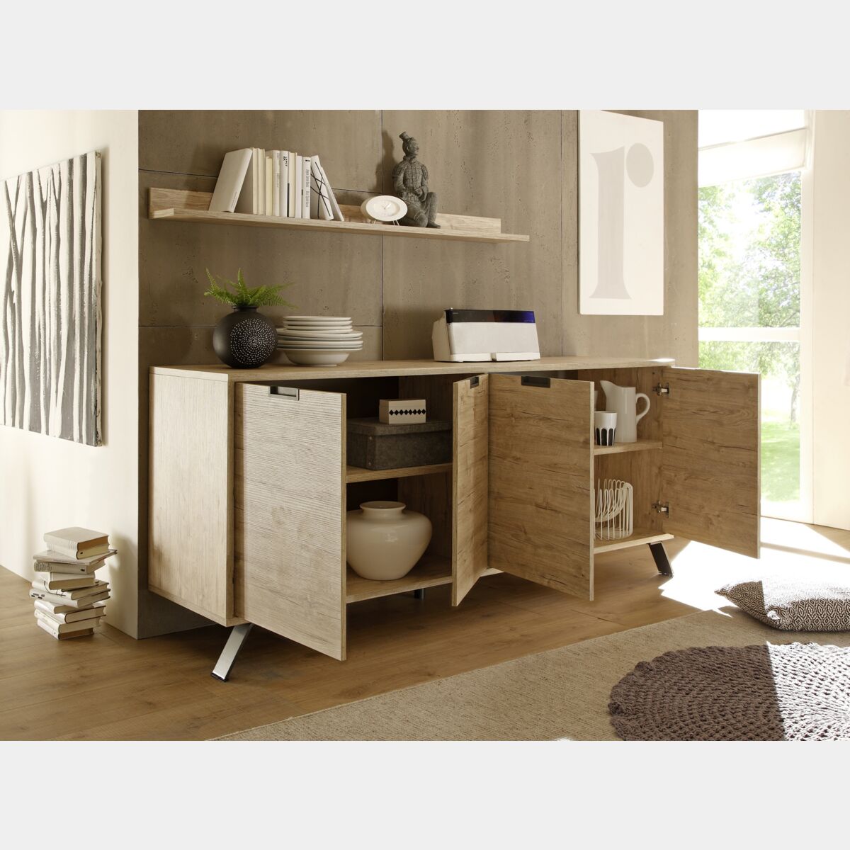 Credenza Moderna, Madia di Design, 4 ante, Legno Sherwood Oak