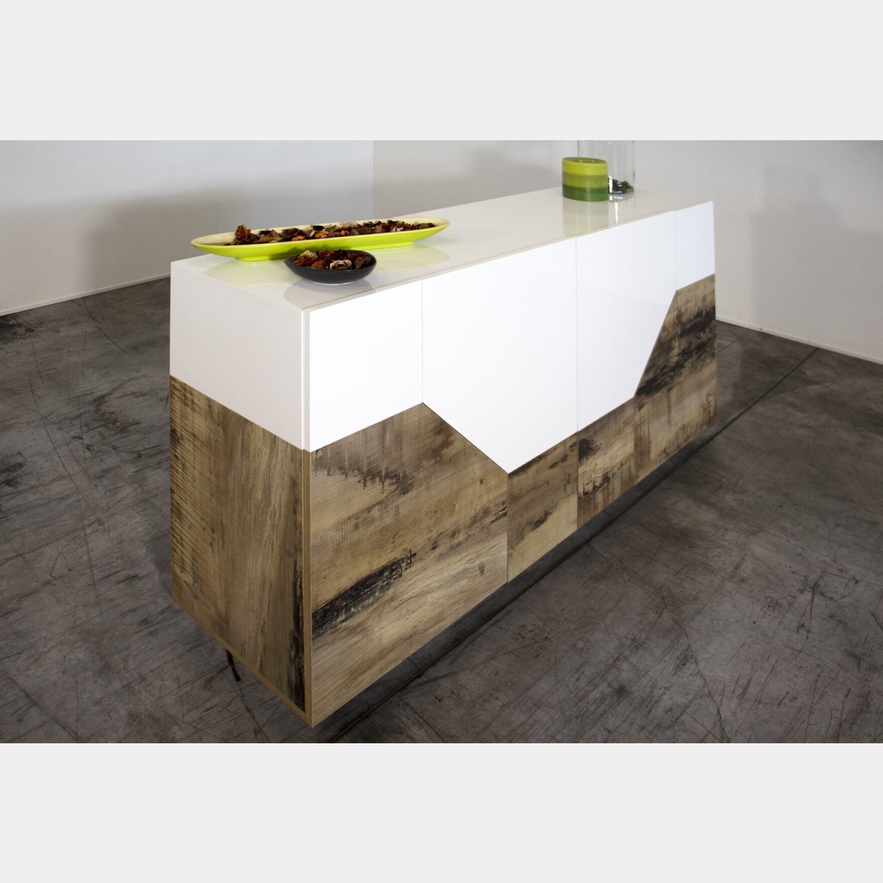 Credenza moderna 4 ante finitura Bianco lucido e Pero.