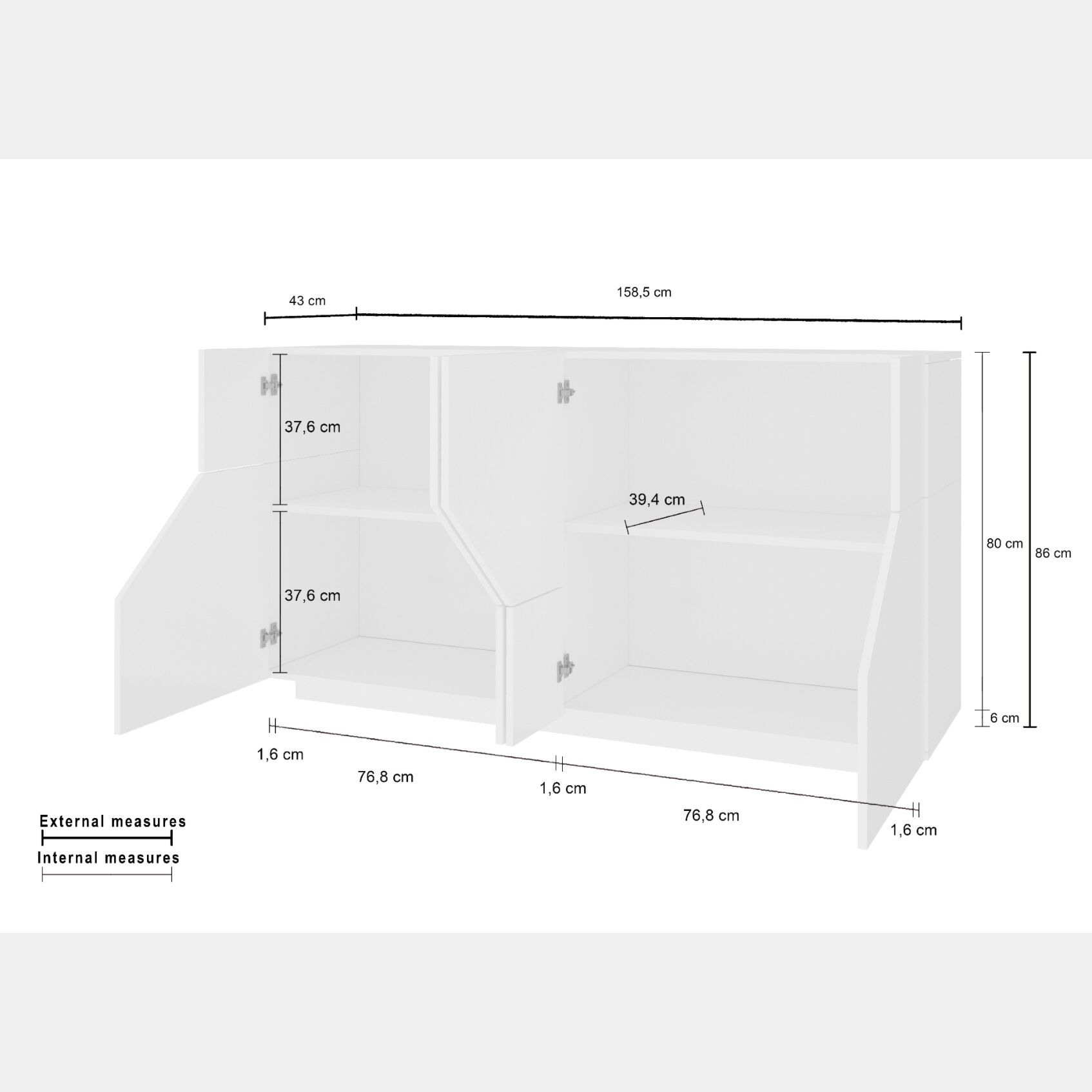 Credenza dotata di 4 capienti ante per riporre comodamente le vostre stoviglie, bicchieri, soprammobili e tovaglie.