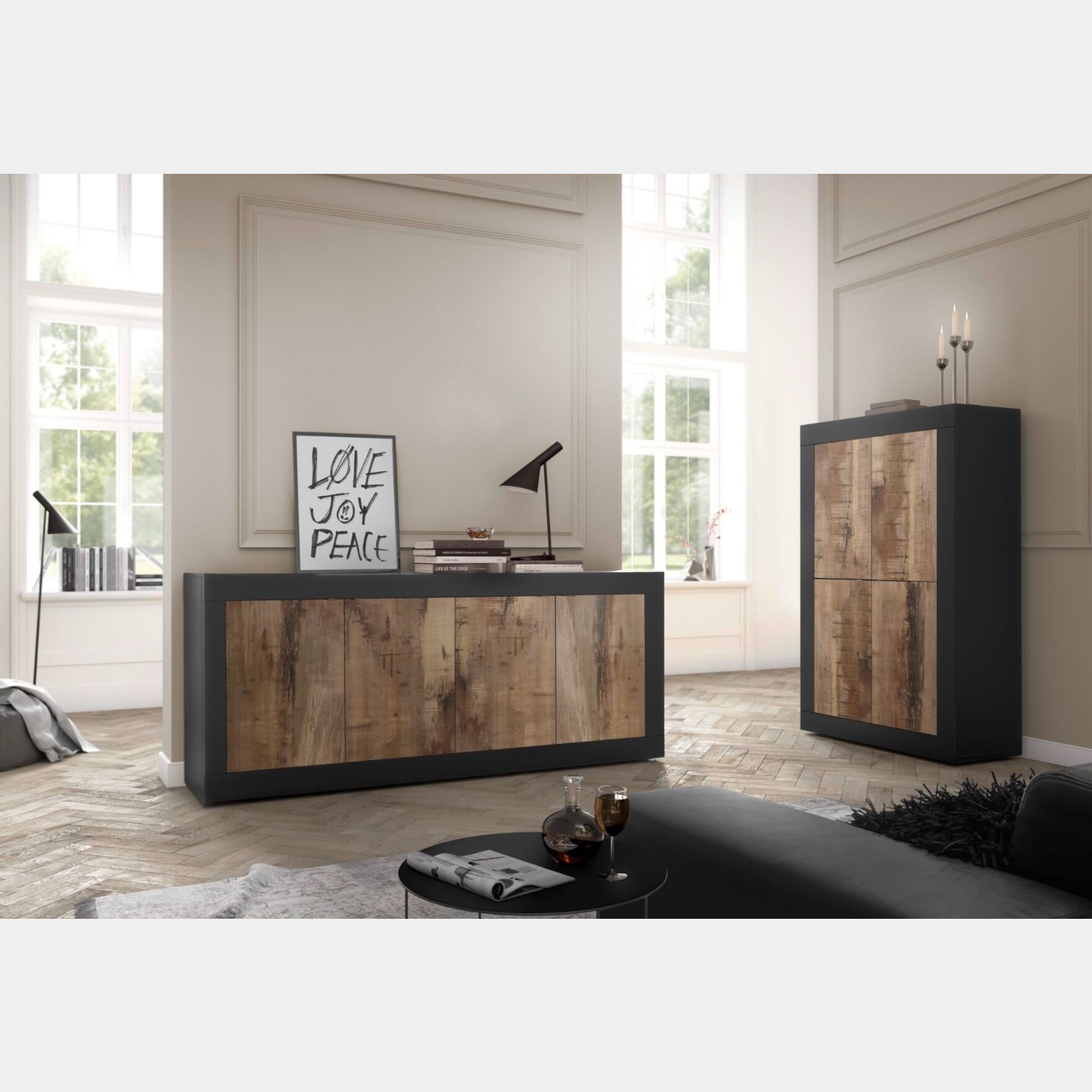 Credenza moderna di design con 4 ante in finitura nero e pero.