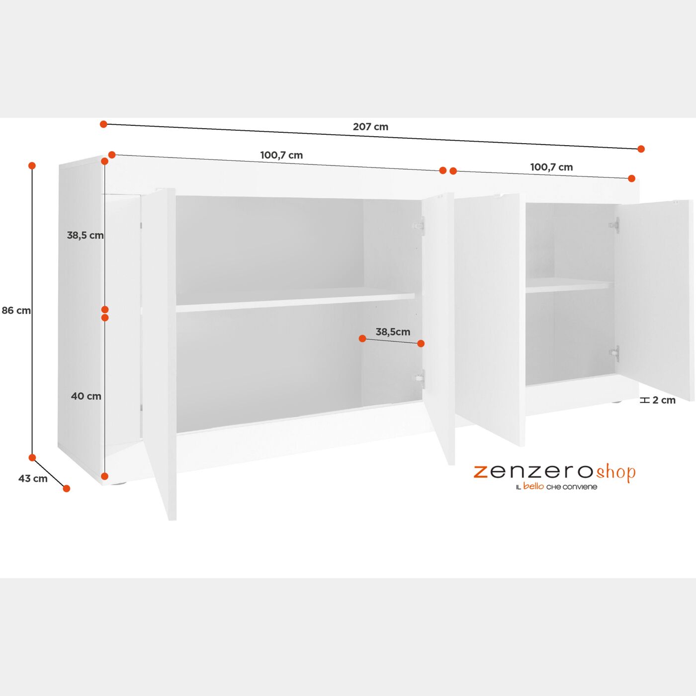 La madia è prodotta da un importanze azienda leader nel settore dell'arredamento. La madia è disponibile anche nella versione in Bianco lucido e Pero, Bianco lucido e Cemento oppure totalmente Bianco lucido.