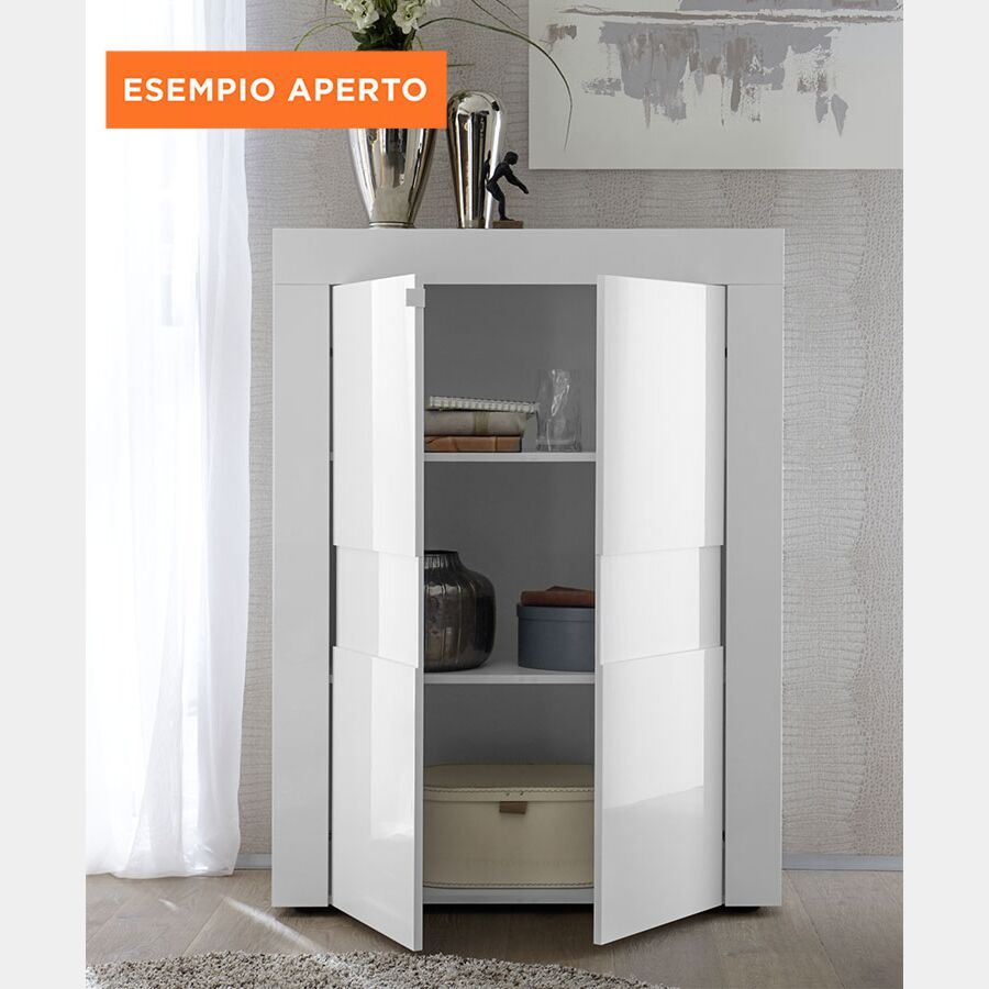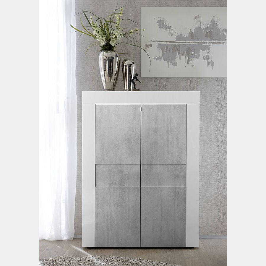 Credenze Moderna, Madia di Design, 2 ante Alta, Bianco Lucido con frontale Beton