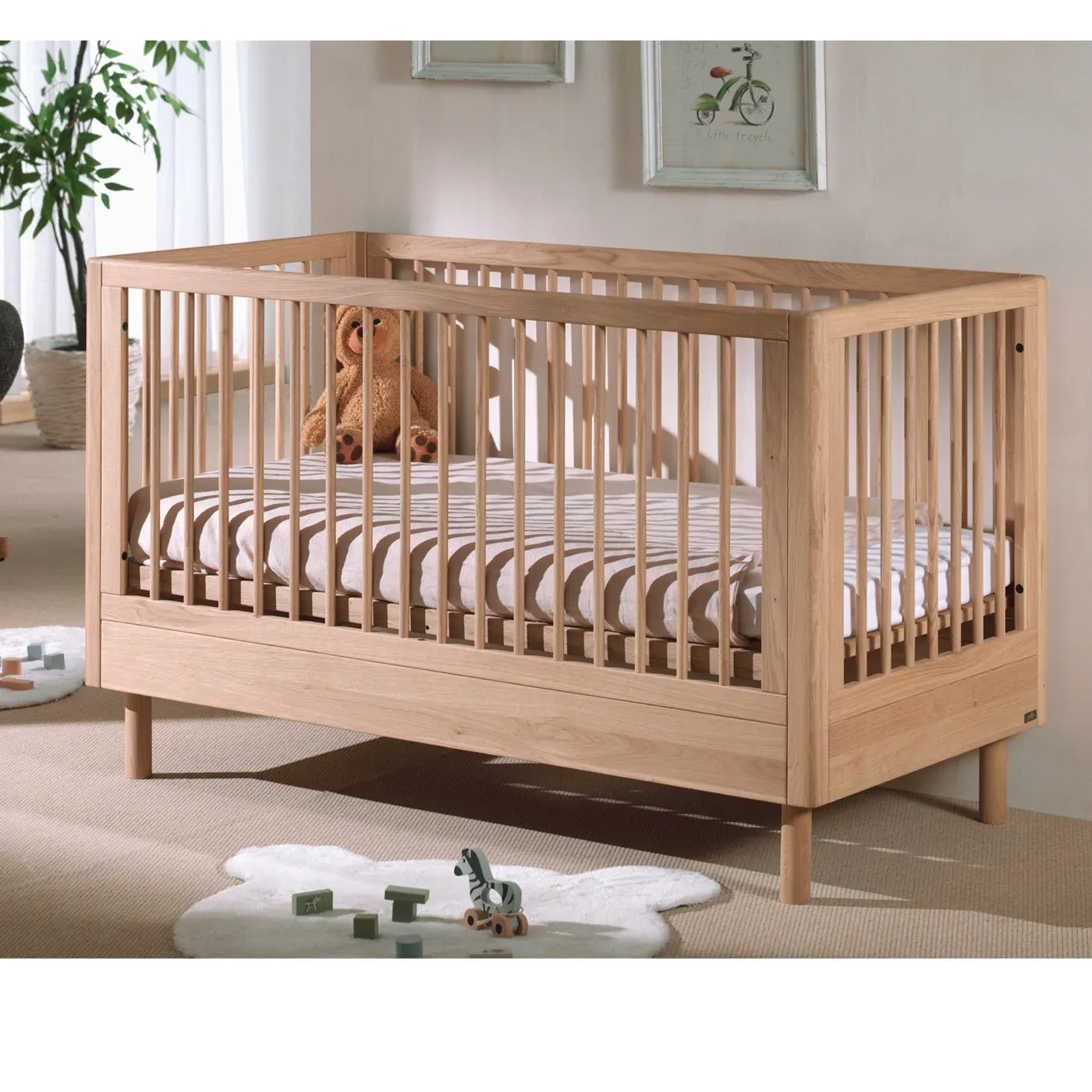 Nuovo arrivo presso Zenzeroshop! Una moderna culla in legno massello e in finitura Rovere. La ringhiera è composta da barre verticali che garantiscono sia grande sicurezza ai vostri bambini o nipoti e allo stesso tempo permettono al soggetto che dorme di avere un'ottima visibilità.