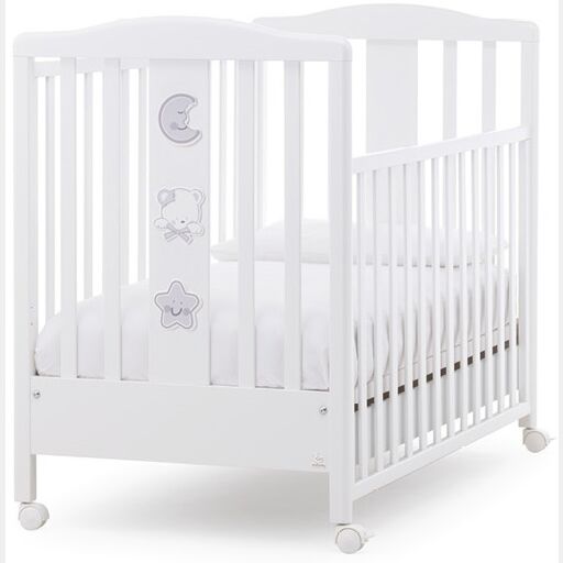 Culla moderna Grizzly con ruote, finitura bianco con decori grigi
