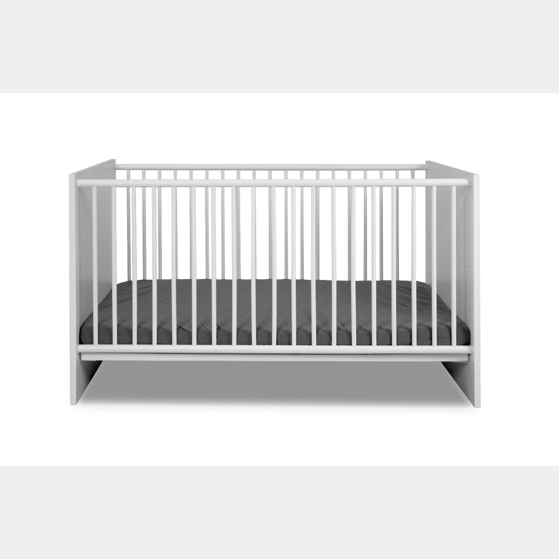 Alla culla è possibile inoltre abbinare l'armadio a 3 ante battenti ed il fasciatoio, sempre nella finitura in Bianco.