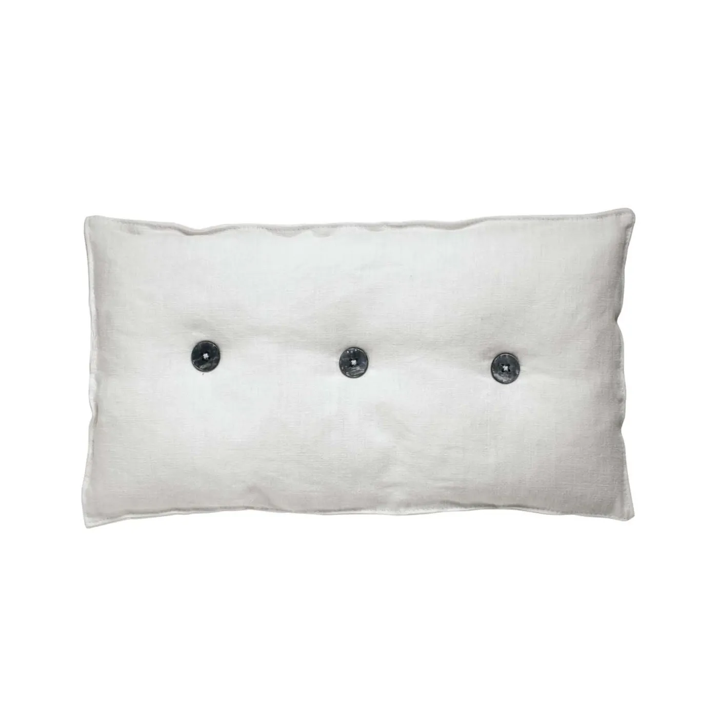 Il cuscino presenta tre bottoni scuri, disposti orizzontalmente al centro, equidistanti l'uno dall'altro. Il design è semplice ed elegante, con un tocco di dettaglio dato dai bottoni.
