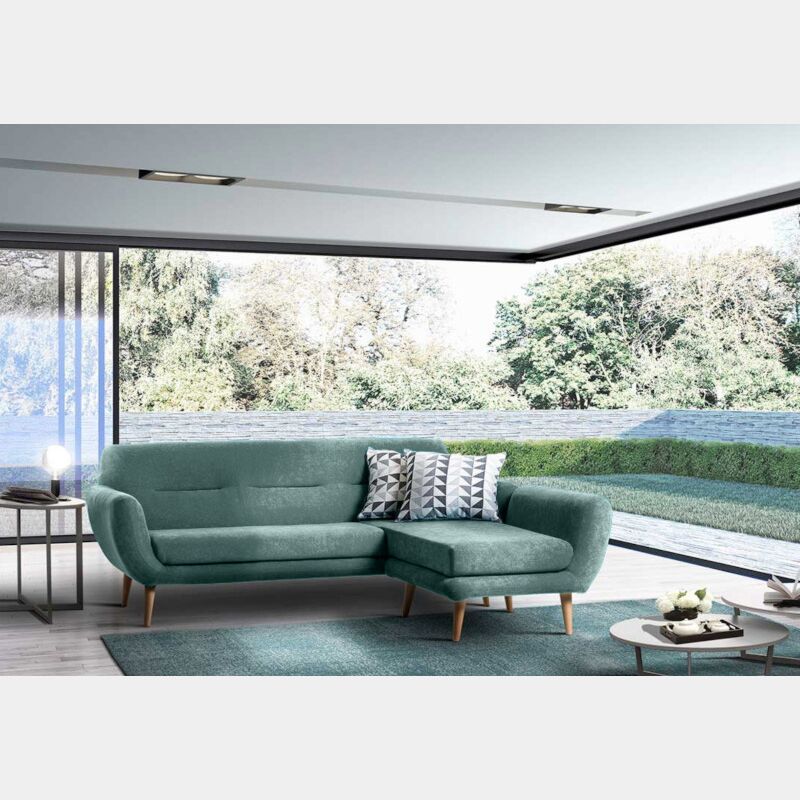 Divanetto moderno Manaslu con gambe in legno, 3 posti angolare