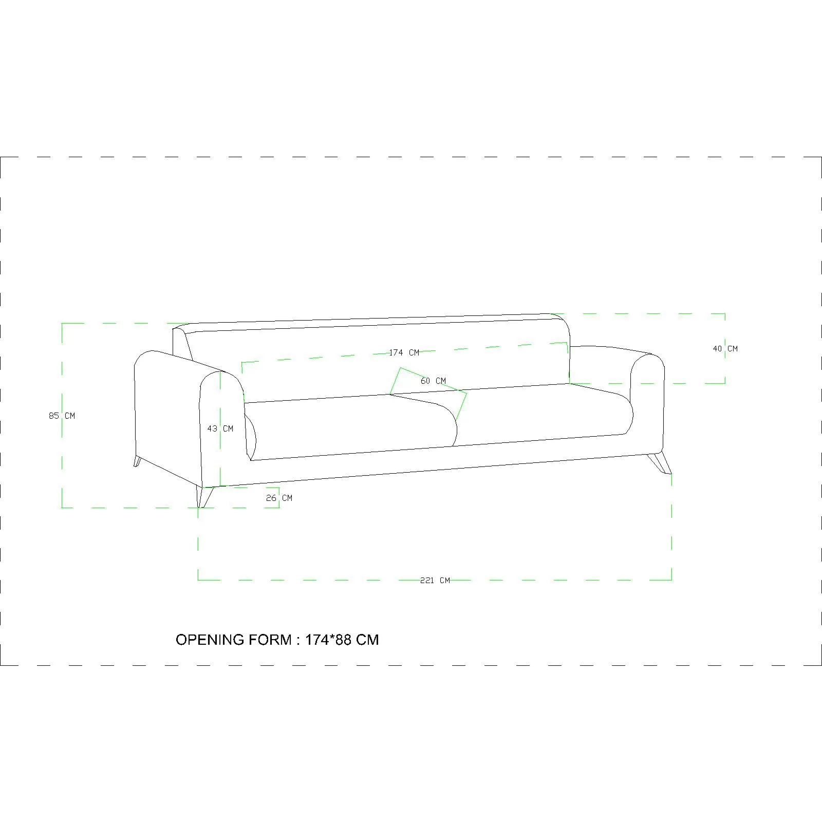 Divano Furia 3 posti con schienale ribaltabile in tessuto Violetta, diventa letto