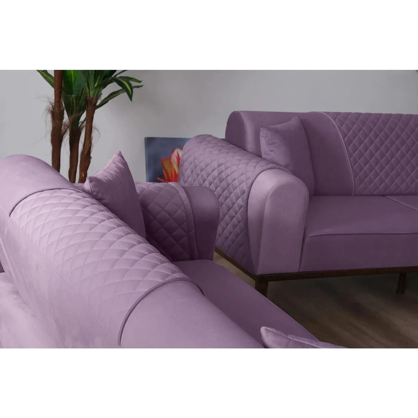 Nei braccioli e sullo schienale sono presenti degli inserti trapuntati in tinta che donando al divano uno stile contemporaneo ed elegante.
