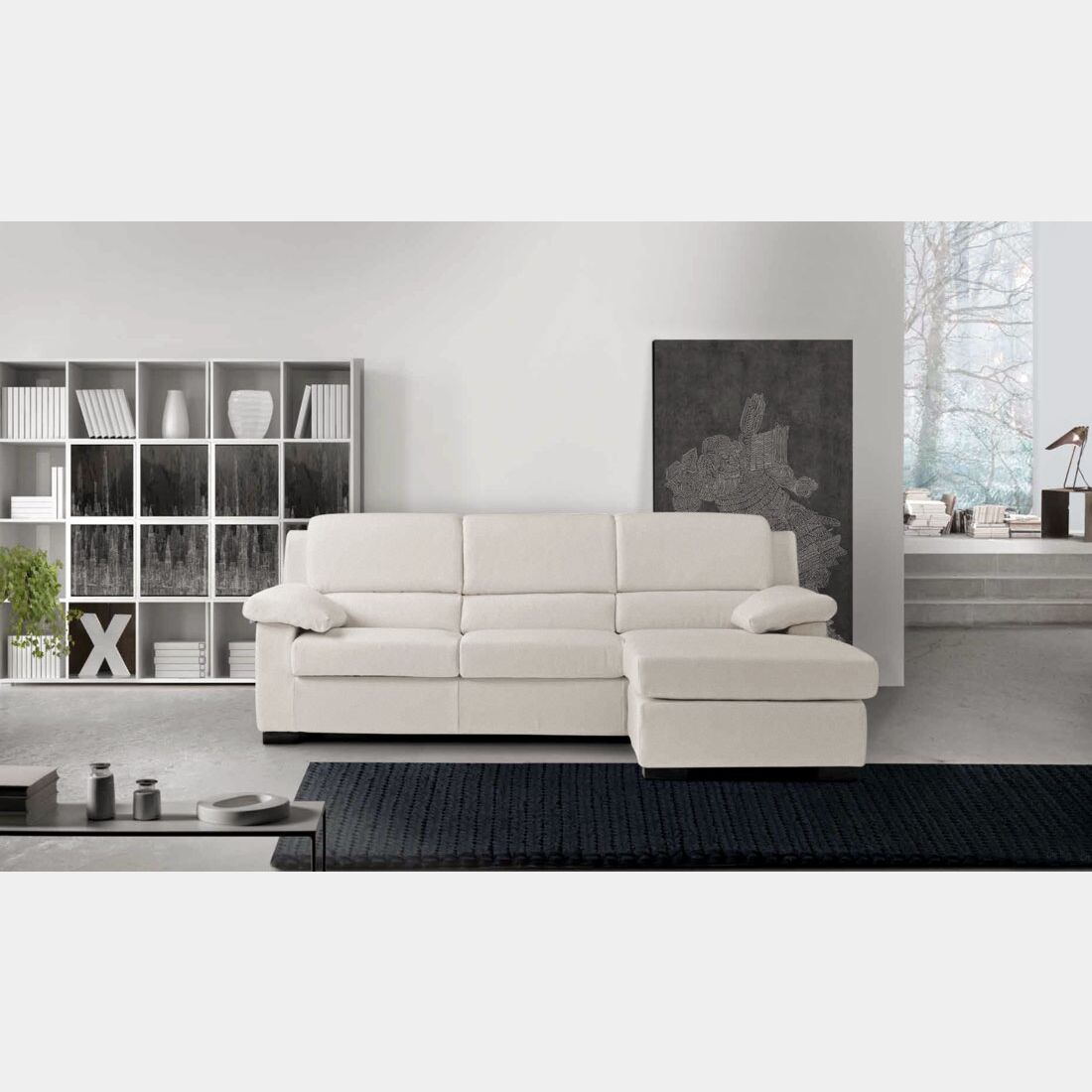 Divano Ginevra a 3 posti con penisola, tessuto Bianco